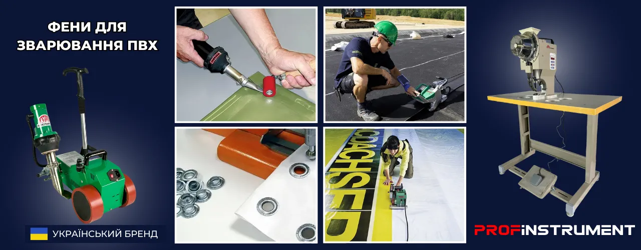 В наявності велика кількість фенів для зварювання ПВХ тентів, банерів, комплектуючих та ремонтних комплектів.