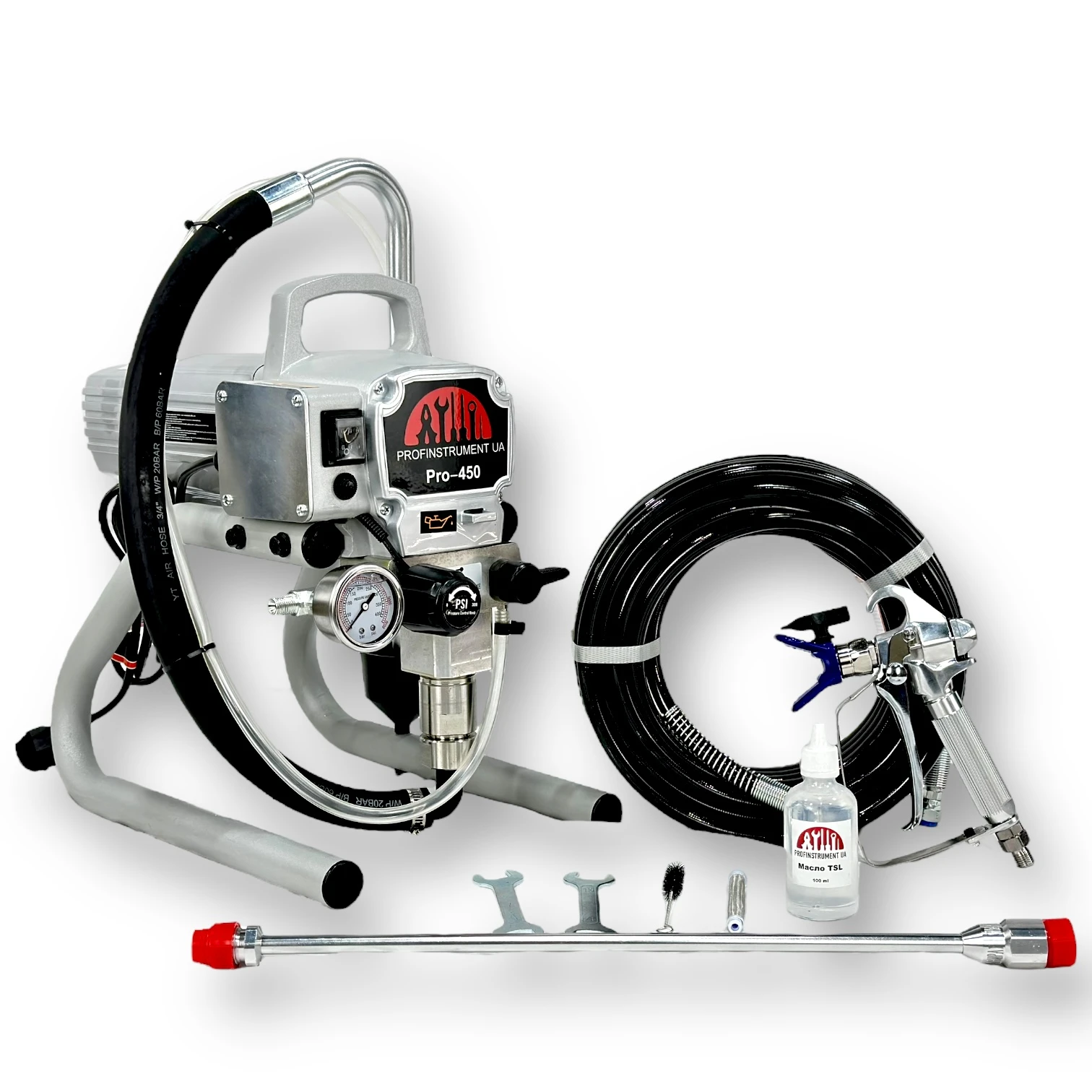 Безповітряний фарбувальний апарат Profinstrument Pro 450 – це оптимальний професійний краскопульт з найкращим співвідношенням ціни та якості серед поршневих апаратів.