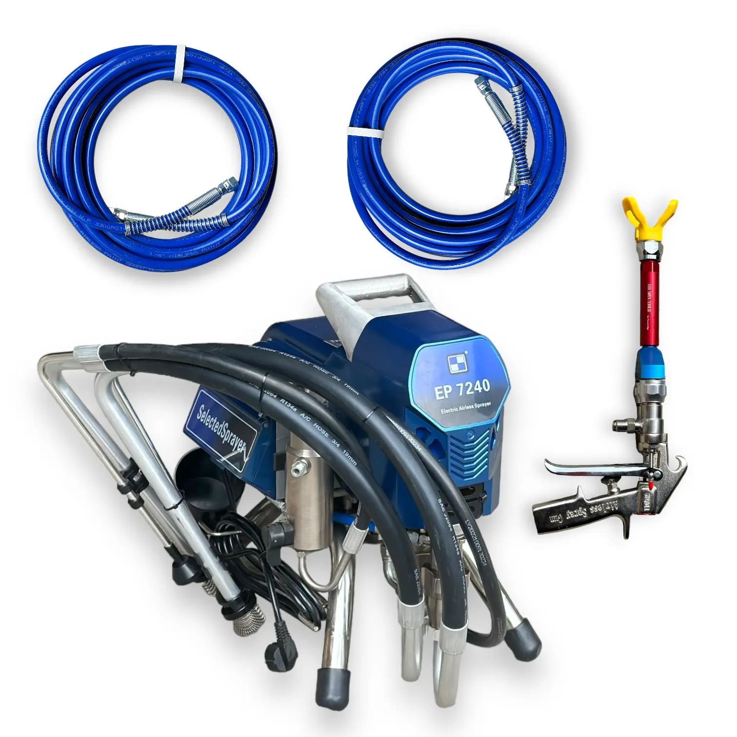 Двокомпонентний безповітряний апарат високого тиску EP-7240 з електроприводом – це недорога та компактна установка з фіксованим співвідношенням змішування 1:1. Ця модель відзначається простотою обслуговування та експлуатації, що робить її ідеальним вибором для різних виробничих процесів.