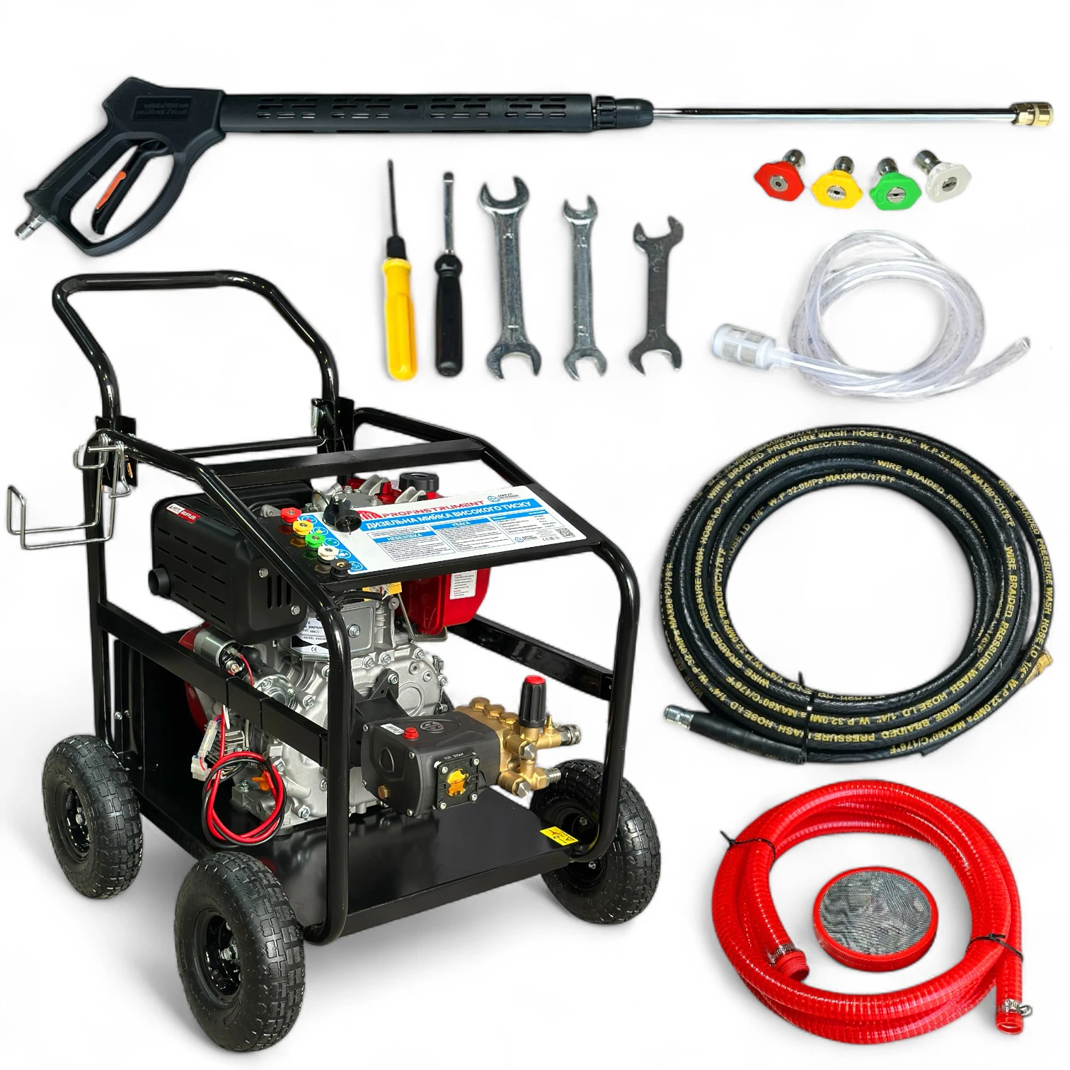 Мийка високого тиску BS-DE — це надійний професійний агрегат, створений для щоденної інтенсивної роботи в найвимогливіших умовах. Оснащена потужним дизельним двигуном на 10 к.с., вона розвиває тиск до 250 бар і подає 15 л/хв води, забезпечуючи швидке й ефективне очищення навіть найскладніших забруднень.