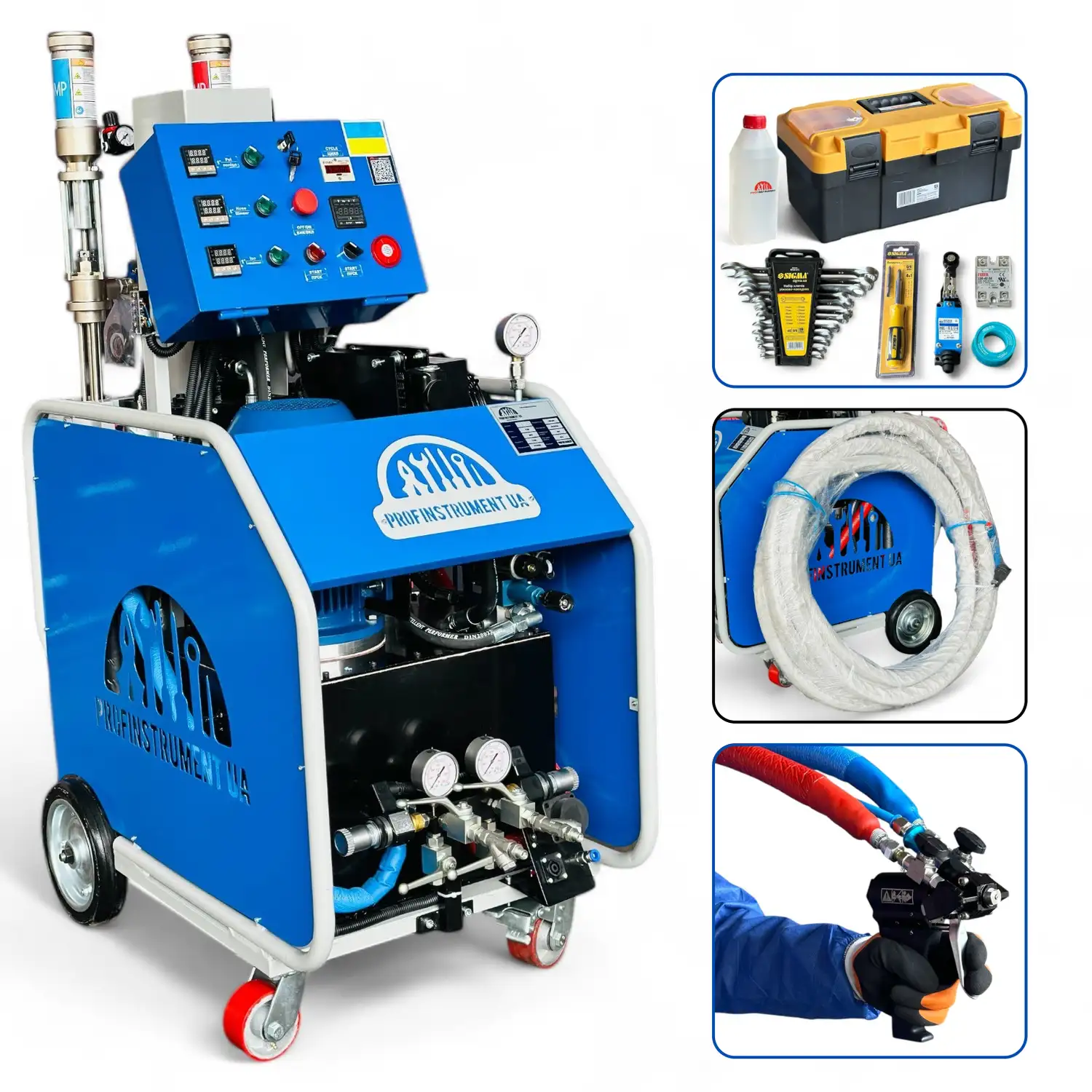 Гідравлічна установка високого тиску Profinstrument H400 ефективно використовується для напилення та заливки пінополіуретану різних марок. Крім того, вона ідеально підходить для нанесення чистої та гібридної полісечовини завдяки вбудованим системам підігріву і максимальному вихідному тиску 220 Бар.