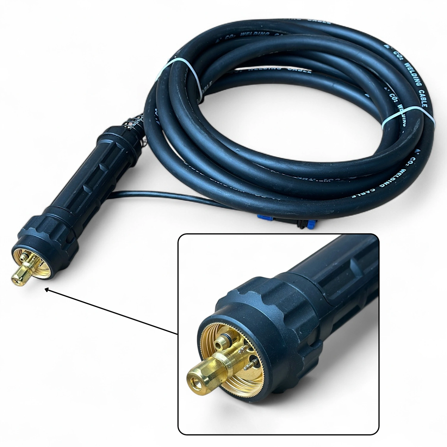 Зварювальний кабель необхідно під’єднати до пристрою подачі дроту та блоку керування; за замовчуванням він оснащений євро-конектором MIG, а для підключення до вашої зварювальної машини ми надамо відповідний адаптер.