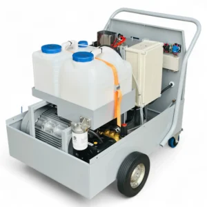 - Бак для солярки використовується для підігріву води до високих температур (до 85°C), що необхідно для досягнення ефективнішого очищення, особливо в умовах, коли вода з водопостачання не досягає такої температури. Солярка в цьому випадку виступає як паливо для обігріву води в системі, що дозволяє мийці працювати навіть у місцях без доступу до електричного підігріву.