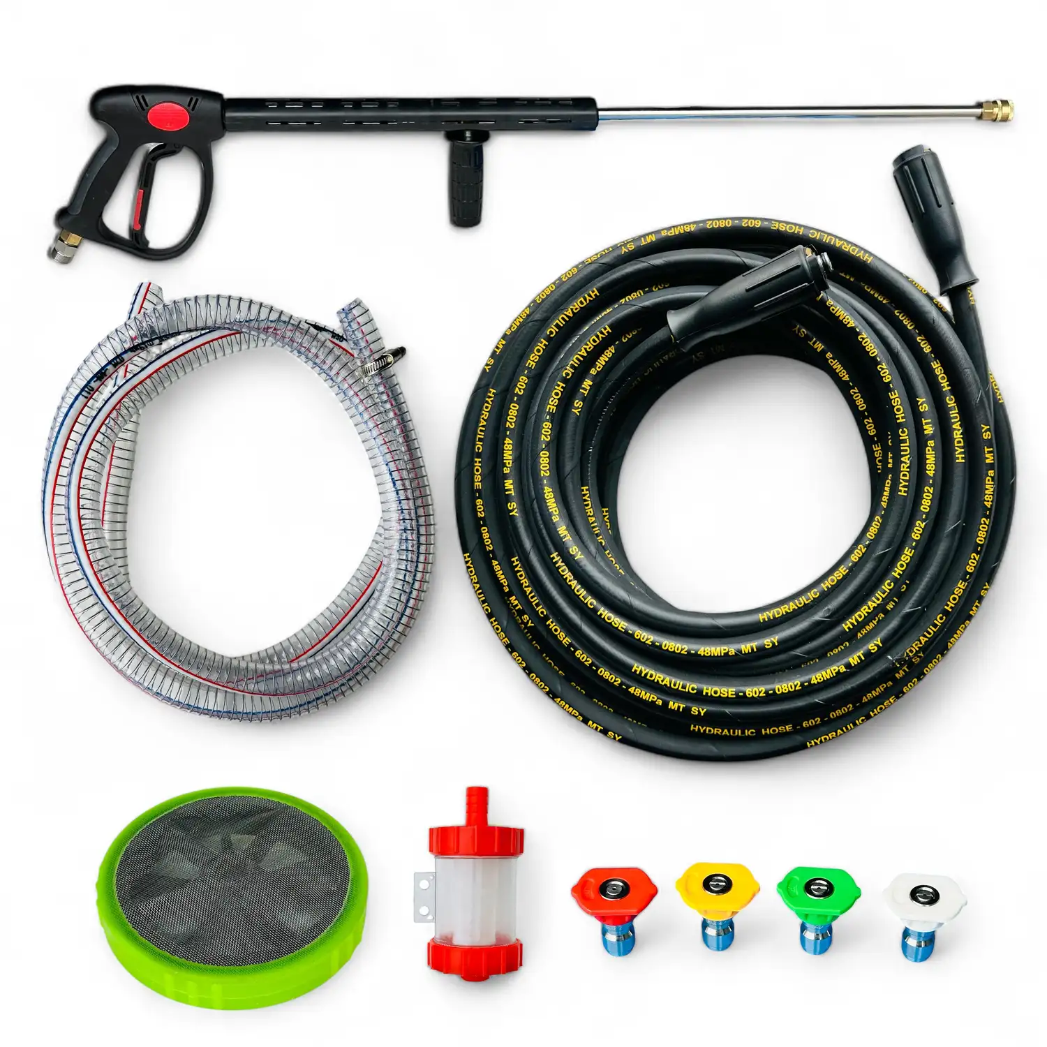 - Шланг — 15 м, двошаровий сталевий для підвищеної міцності.
