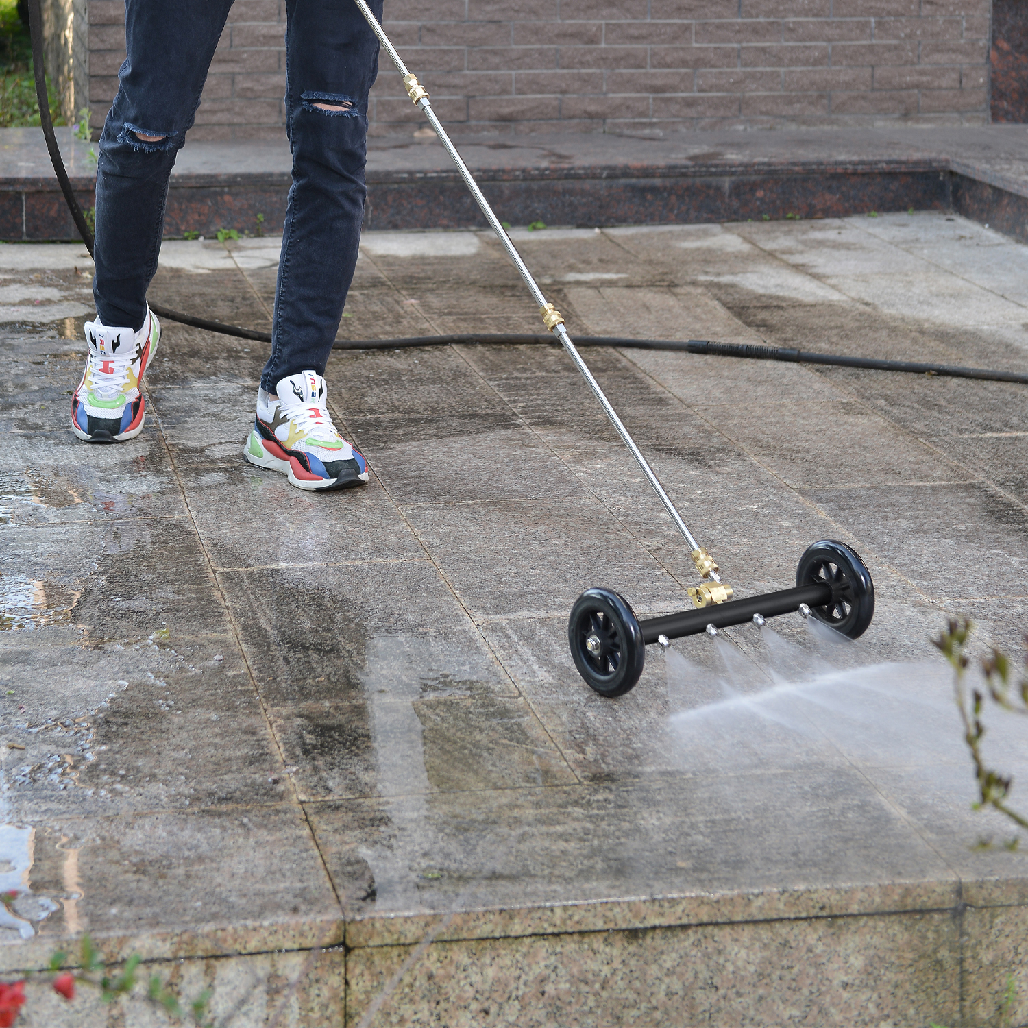Завдяки конструкції на колесах насадка легко ковзає під автомобілем або по землі, забезпечуючи рівномірне розподілення водяного струменя та швидке очищення.