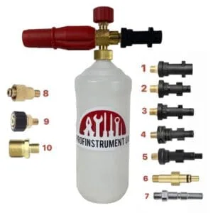 Пінна насадка Profinstrument Q3 спеціально розроблена для створення суперщільної піни, змішуючи миючий засіб і воду за допомогою мийки високого тиску. Завдяки нашому власному дизайну – основа з металу, вона створює і розпилює неймовірно товсту і щільну піну на ваш автомобіль, мотоцикл, підлогу, тротуар, дах або інші предмети, що миються.