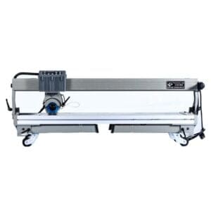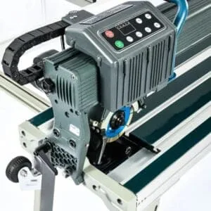 Крім того, він був оснащений колесами по обидва боки машини для полегшення транспортування. Оснащений двома комплектами додаткових бічних опор, які додатково підвищують стійкість та дозволяють обробляти плитку великого розміру. Перший набір опор довжиною 40 см (кріпитися на передню частину плиткоріза), другий набір опор має довжину 80 см (кріпитися на задню частину плиткоріза) і мають пази для кріплення опорної планки. Різак оснащений двигуном потужністю 3000 Вт, завдяки якому машина не втомлюється навіть при роботі з дуже твердою плиткою або каменем. Щітковий двигун має плавний пуск. Плиткоріз не має вбудованої ємності для води, рідина, що охолоджує, подається до диска з окремої ємності, наприклад відра, за допомогою насоса, прикріпленого до нижньої частини стільниці. Насос не занурювальний, тому він не плаває у брудній воді, а всмоктування води здійснюється за допомогою шланга, оснащеного системою фільтрації, що запобігає пошкодженню насоса. Охолодження диска обладнано двома форсунками для подачі води, які можна легко від’єднати від шланга та використовувати для очищення машини після роботи без необхідності в іншому джерелі води. Робота верстата проста та інтуїтивно зрозуміла, а вся робота виконується на панелі з дисплеєм, на якому ми можемо змінювати режими роботи, керувати подачею води, лазером та швидкістю різання, який має 10 рівнів швидкості в автоматичному режимі.