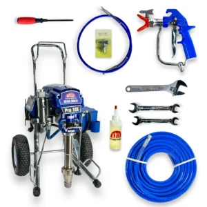 Безповітряний фарбувальний апарат Pro-10X – це потужний фарбувальний апарат високого тиску, призначений для нанесення високов’язких матеріалів, таких як вогнезахист та шпаклівка. Апарат має поршневий насос із циліндром збільшеного діаметра та вхідний клапан великого прохідного перерізу, що дозволяє вмістити більший об’єм матеріалу за один хід.