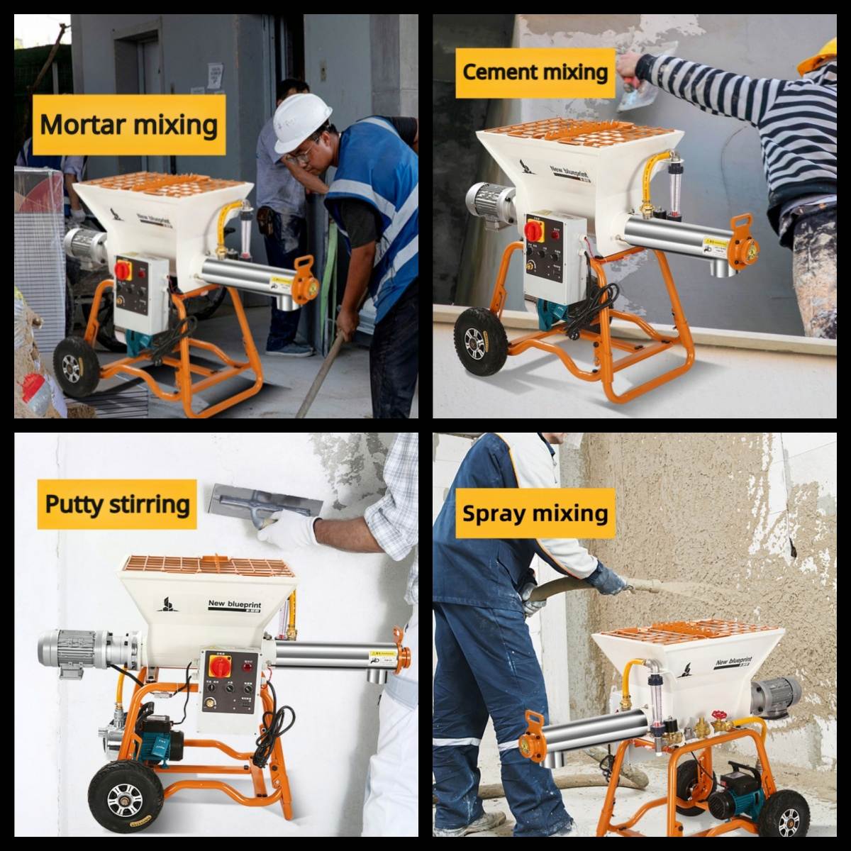 Міксер підходить для різних видів робіт: кладки, штукатурки, шпаклівки, стяжки та облицювання плиткою. Завдяки безперервному режиму роботи і точному дозуванню матеріалу та води, він економить час і забезпечує стабільну якість суміші.