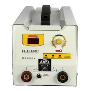 Споттер по алюмінію – Призначений для вирівнювання вм’ятин на кузові автомобіля шляхом приварювання алюмінієвих або обміднених деталей та подальшого витягування металевих поверхонь, призначений для приварки шпонок з алюмінієвого сплаву (діаметром M4/5/6) і подальшого усунення горбів і вм’ятин алюмінієвого корпусу автомобіля.