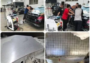 Точкове зварювання алюмінію та металу споттером Profinstrument RKA 2800 – 2 зварювальні спотери на одному візку, дуже зручно для роботи з алюмінієвими або сталевими та обмідненими деталями та подальшого, витягування металевих поверхонь. Спотер незамінний на СТО та в майстернях з ремонту автомобілів.