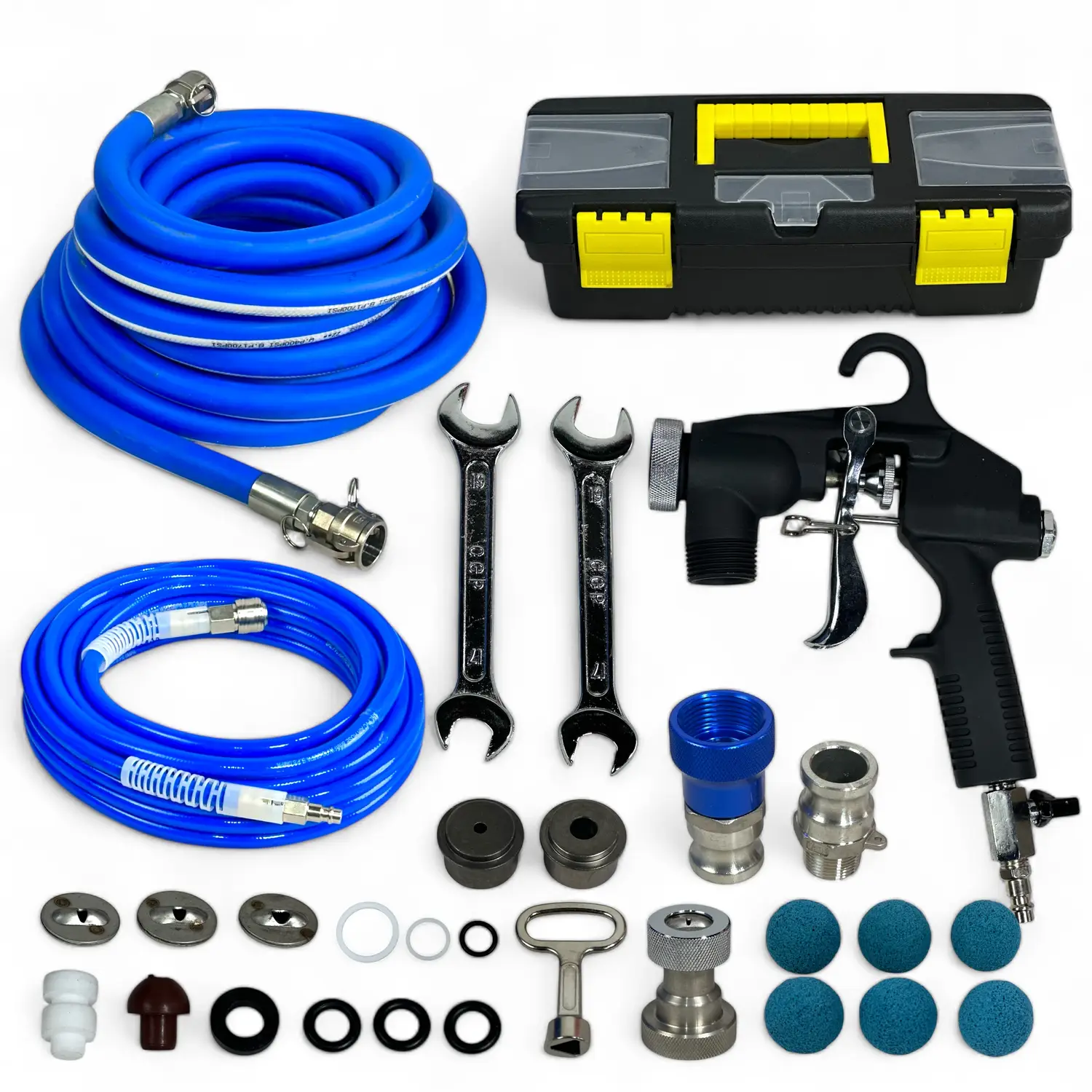 - Повна комплектація для роботи – шланги, фарбопульт, сопла, ключі та інші аксесуари входять у комплект, що дозволяє почати роботу одразу після отримання.