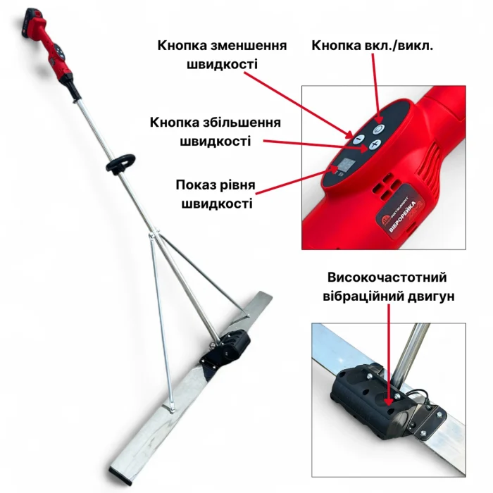 Завдяки акумуляторному живленню, віброрейка забезпечує повну автономність і високу мобільність на будівельному майданчику без необхідності підключення до електромережі.