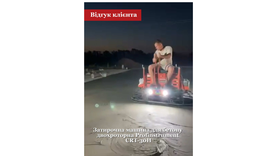 Вертоліт Profinstrument CRT-30H використовується для чорнової та чистової обробки бетонних підлог і майданчиків під час будівництва або ремонту. Її висока маневровість і точність керування роблять її незамінною для рівномірного та якісного загладжування великих площ.