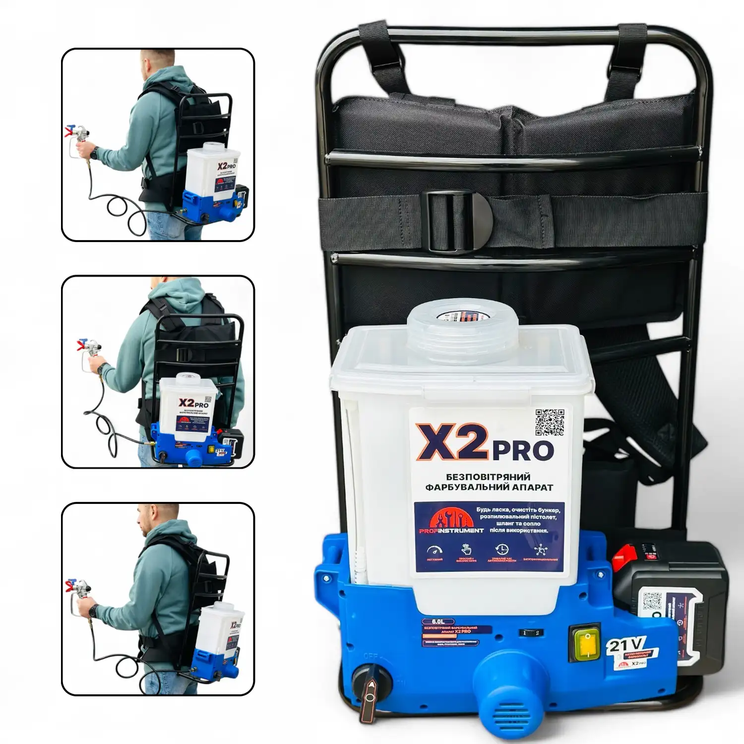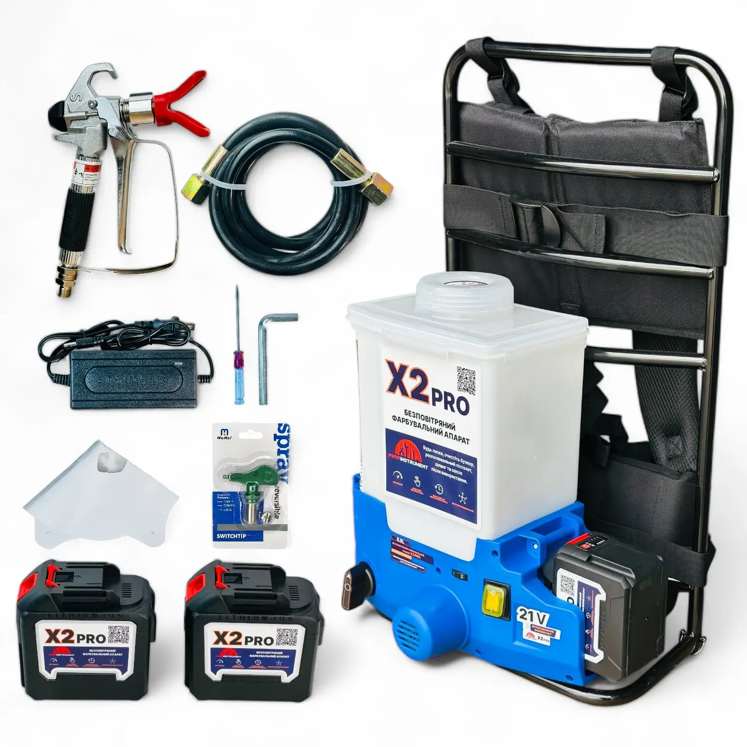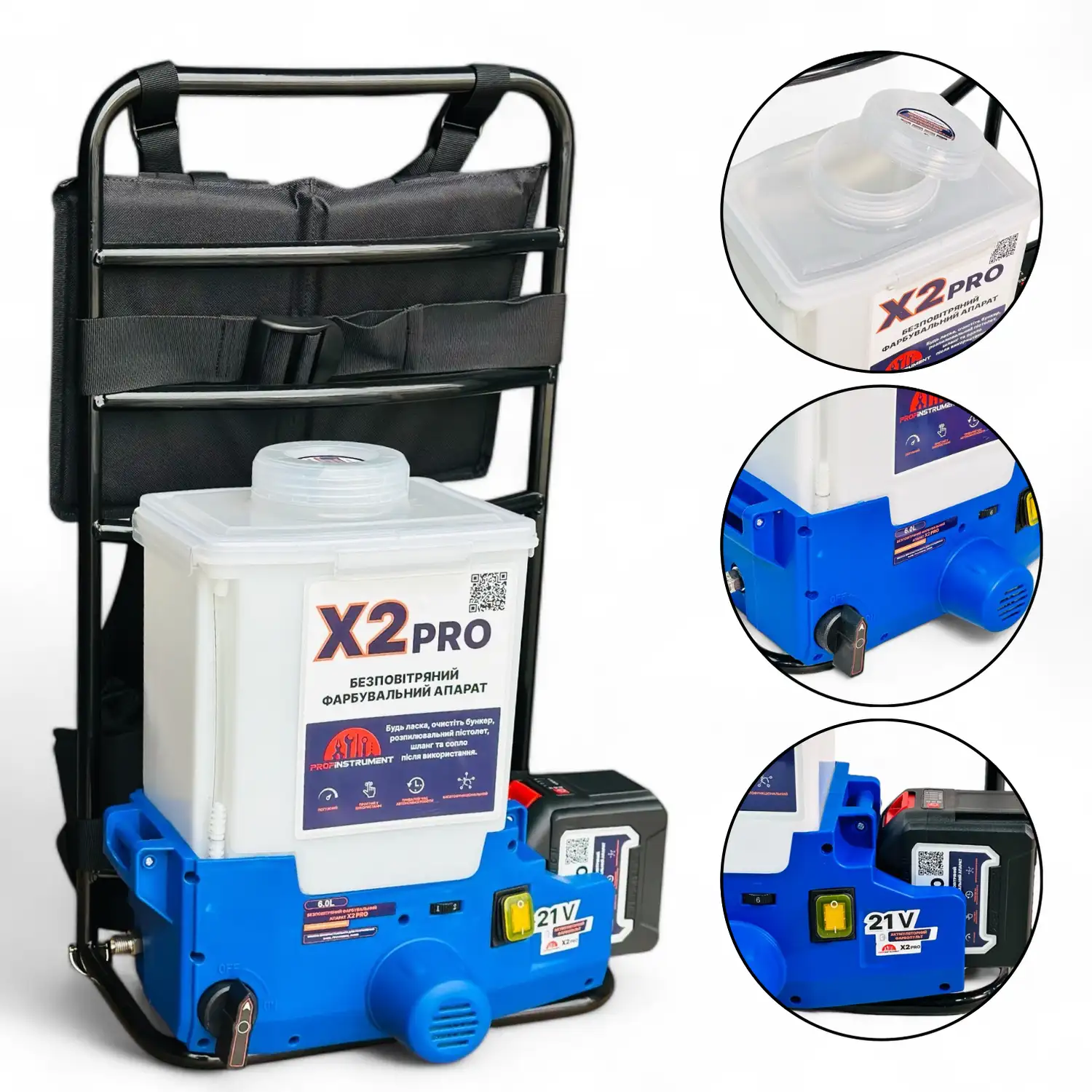 Аккумуляторный безвоздушный покрасочный аппарат Profinstrument X2 Pro (1.5 л/мин 500 Вт 21V 6Ah)