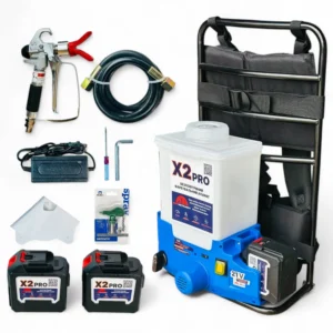 Ручной аккумуляторный окрасочный аппарат Profinstrument X2 Pro – это высокотехнологичное устройство для безвоздушного распыления различных лакокрасочных материалов. Его компактный дизайн и удобное крепление в виде сумки на спину обеспечивают высокую мобильность и удобство в использовании. Идеально подходит для нанесения водоимульсий, грунтовок, эмалей и лаков на поверхности любой сложности.