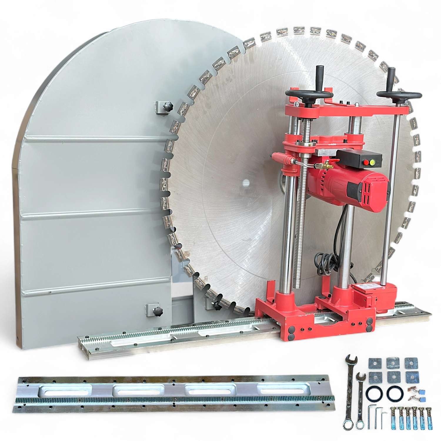Стенорез оснащен мощным двигателем 5,6 кВт и поддерживает алмазные диски диаметром от 300 до 1000 мм , что позволяет выполнять глубокие резы до 420 мм . Надежная конструкция и точная механика гарантируют аккуратный пропил даже в труднодоступных местах, минимизируя повреждения стен и полов и сокращая время работы.