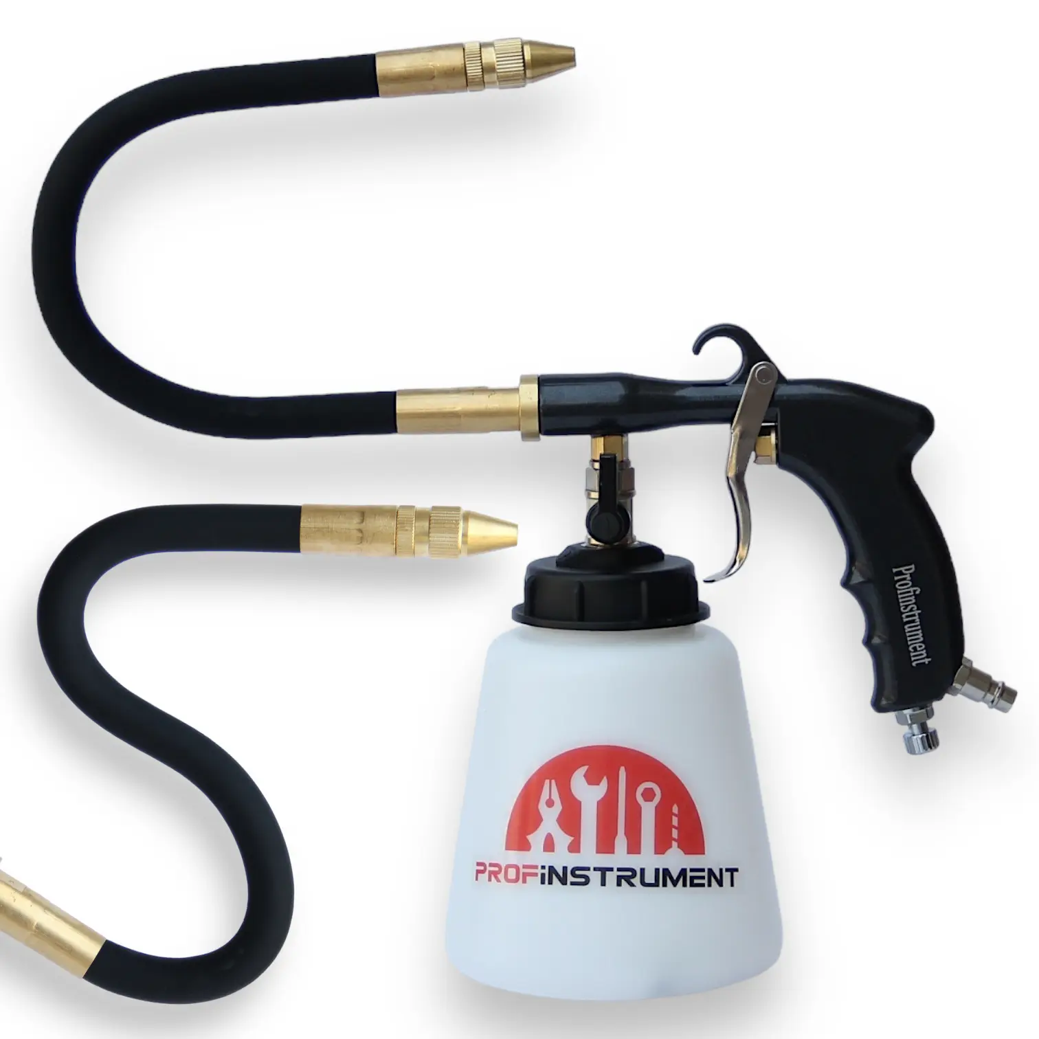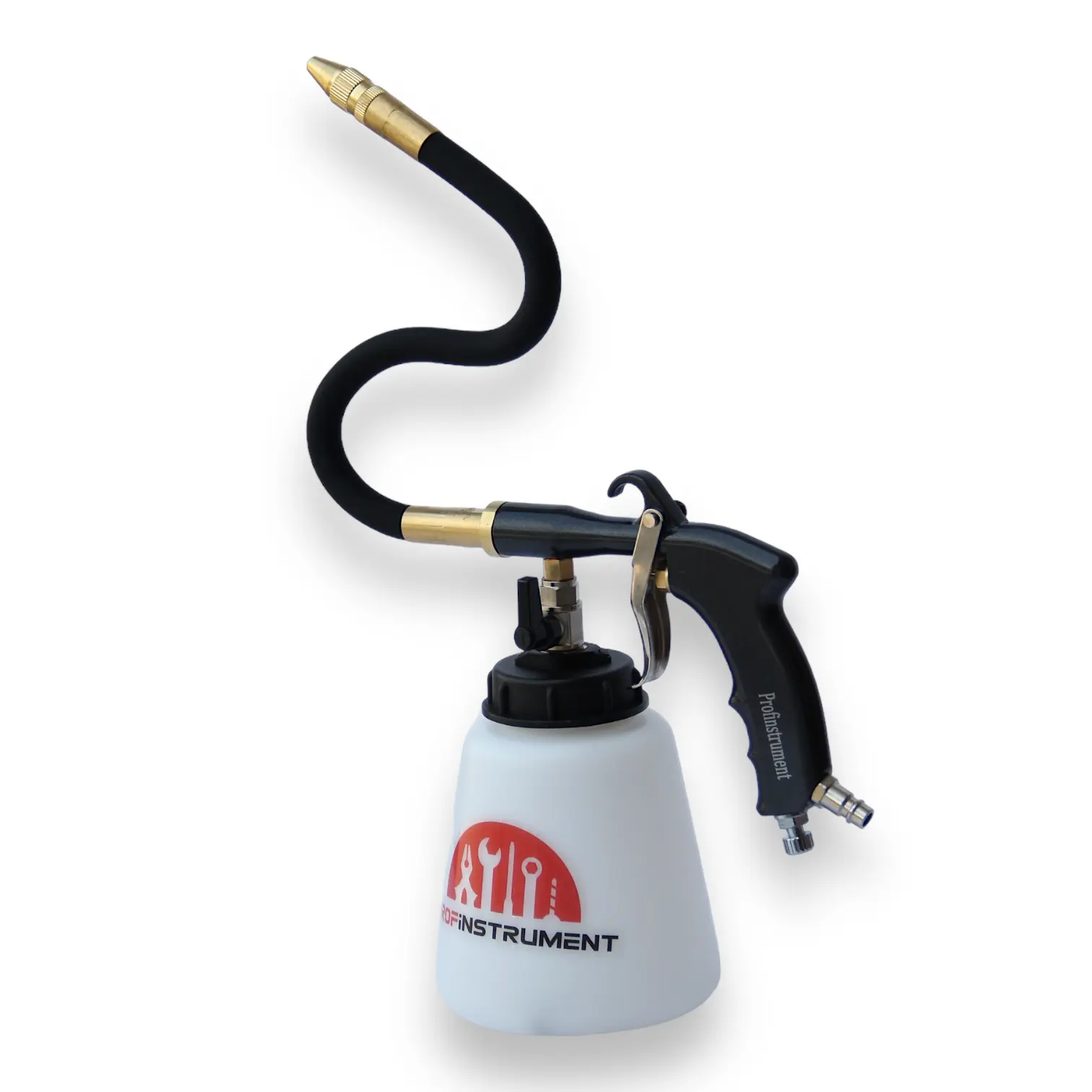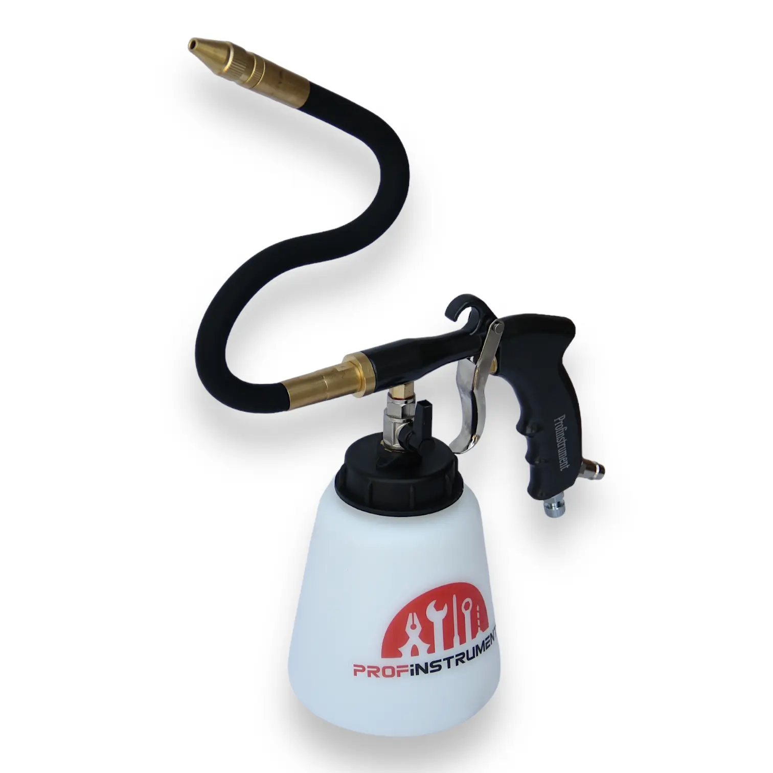 Пневмопистолет для чистки моторного отсека оснащен наружной трубкой для распыления жидкости и длинным распылительным соплом, что позволяет эффективно очищать труднодоступные места в моторном пространстве. Пистолет распыляет мелкодисперсный туман очищающей жидкости с продувкой, обеспечивая высокий уровень чистоты. Инструмент оснащен клапаном для управления, позволяющим точно контролировать процесс распыления.