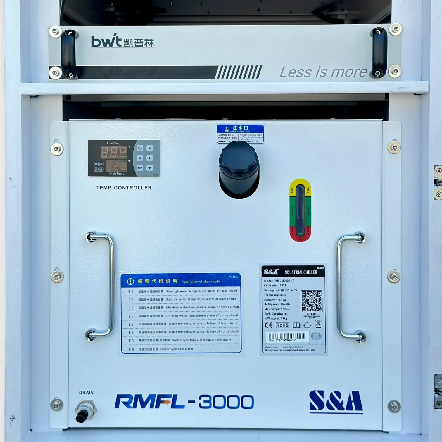 - Двойной контур охлаждения : Может одновременно охлаждать как волоконный лазер, так и оптику/лазерную пушку.