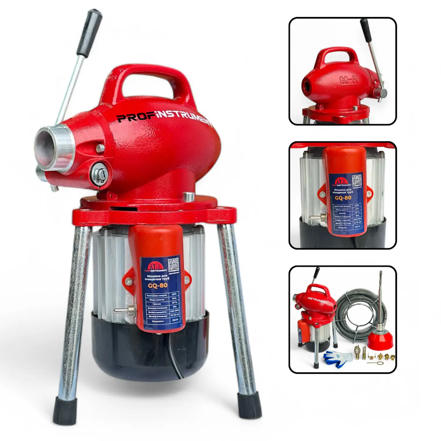 Profinstrument GQ-80 – профессиональная секционная машина для прочистки труб (Ø32-110 мм)