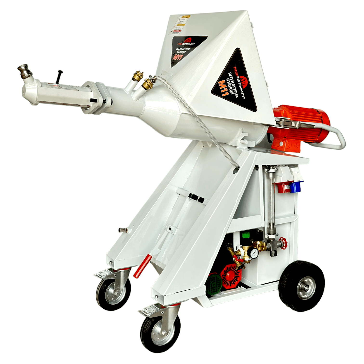 Profinstrument M11 – это мощная штукатурная станция, предназначенная для быстрого и эффективного механического нанесения штукатурных смесей. Благодаря поддержке мультивольтажа (220В и 380В), M11 способна адаптироваться к разным условиям эксплуатации, что делает ее универсальным выбором для бытовых и промышленных задач. Двигатель мощностью 5,5 кВт обеспечивает стабильную и надежную работу даже при использовании с тяжелыми материалами. Это делает M11 оптимальным решением для работы на больших жилых, коммерческих и промышленных объектах.