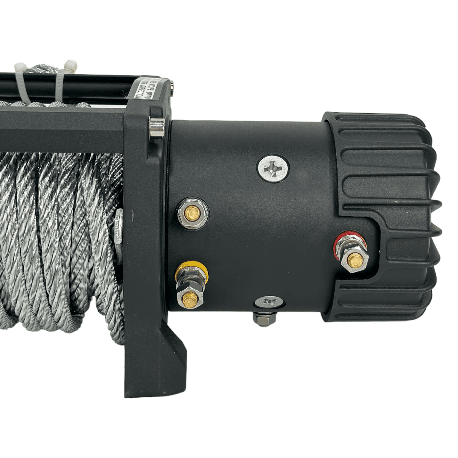 Автолебедка имеет металлический корпус, покрытый специальным защитным черным покрытием, что делает ее устойчивой к влаге и другим загрязнениям. Она изготовлена из высококачественных материалов и оснащена современным асинхронным двигателем, что избежит зажима механизма во время операций извлечения. Использование высококачественных материалов для производства шестерен и двигателя обеспечивает безопасность и надежность работы.