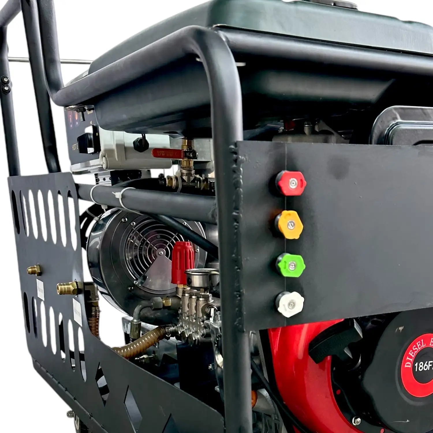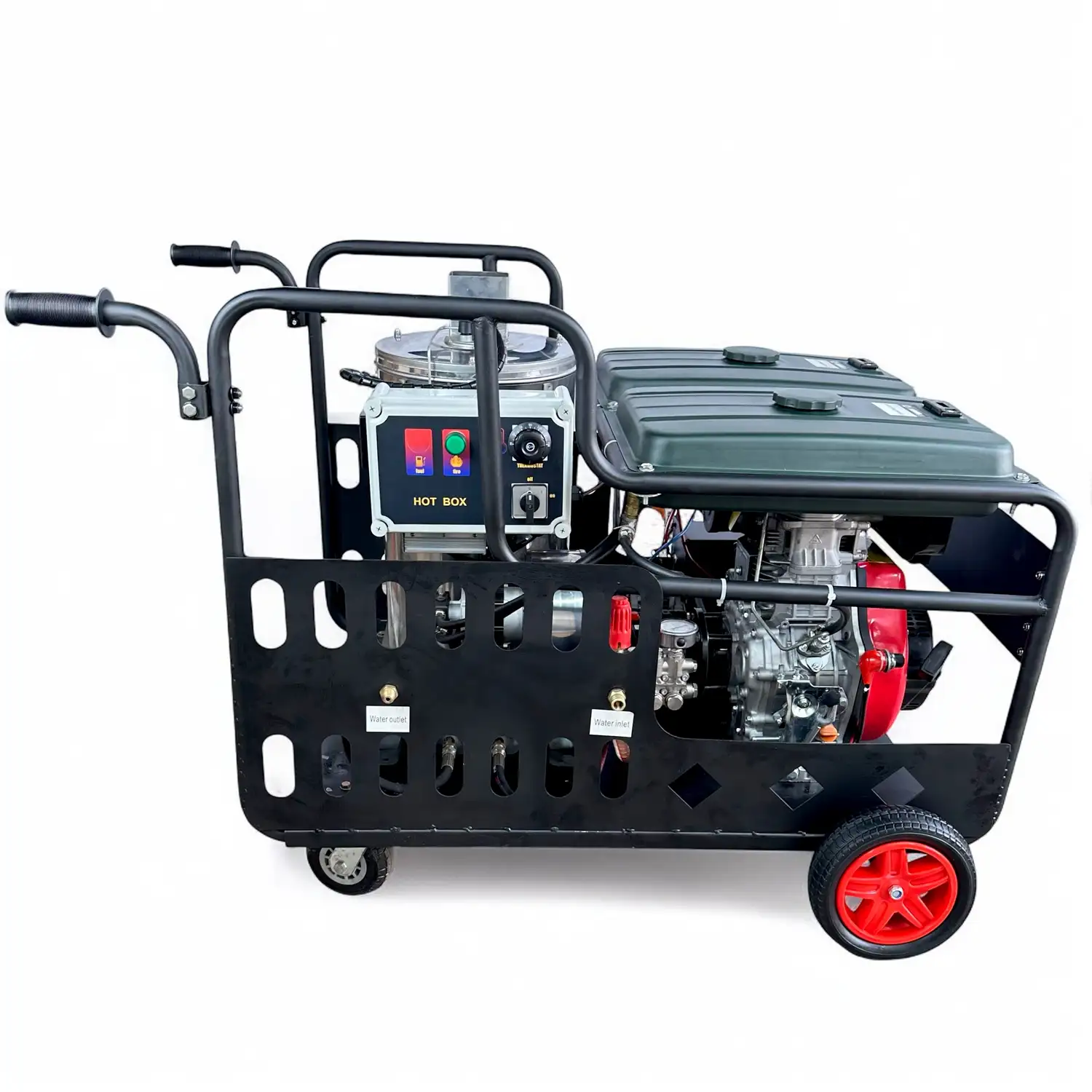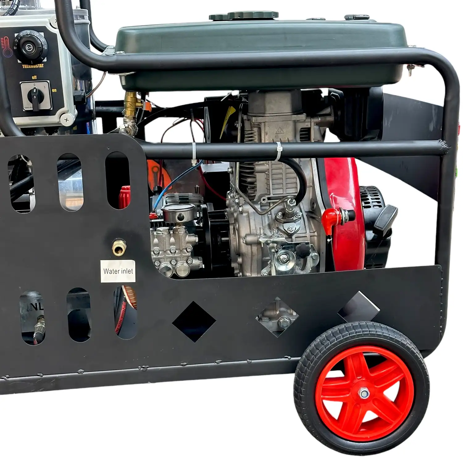 • Автономная работа без подключения к сети – дизельный двигатель позволяет работать независимо от электричества, что делает эту мойку идеальным решением для использования в полевых и труднодоступных местах.