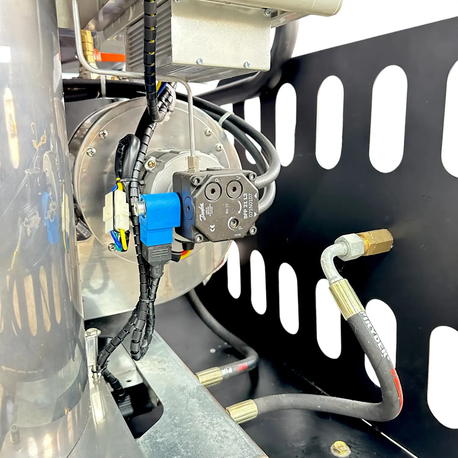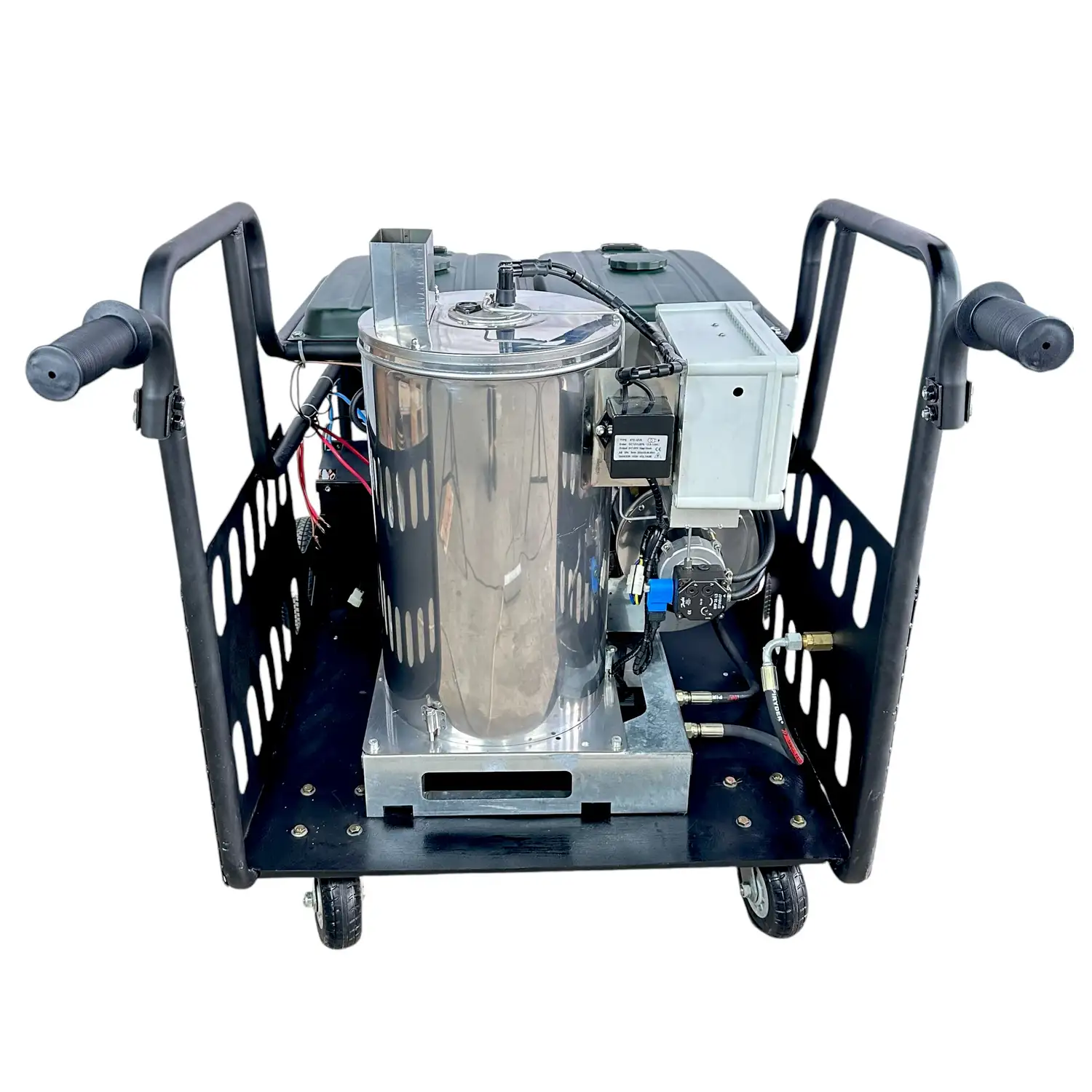 Высокое давление и подогрев воды – основные преимущества этой мойки, что делает ее незаменимой для удаления тяжелых загрязнений из авто, сельскохозяйственной техники, промышленного оборудования, фасадов зданий и даже садовой мебели. Встроенный бойлер мощностью 60 кВт позволяет нагревать воду до температуры 100°C, что значительно повышает эффективность очистки, особенно в условиях стойких загрязнений, таких как жир, масло, ржавчина и пыль.