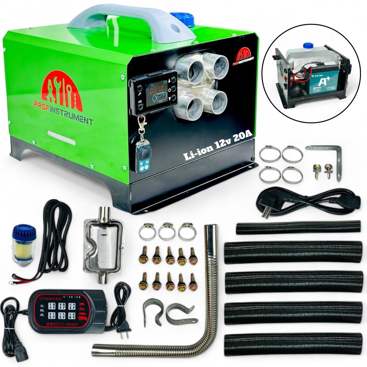 Универсальный автономный дизельный обогреватель LI-5000W – со встроенным аккумулятором – идеальное решение для обеспечения тепла в местах без доступа к центральному питанию. Благодаря трехволновой поддержке питания (12V, 24V, 220V) он обеспечивает высокую гибкость при использовании в разных условиях – в автомобилях, кемперах, на дачах или в зонах без стационарного электропитания.