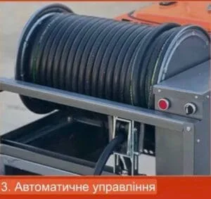 - Катушка может вмещать до 70м шланга высокого давления.