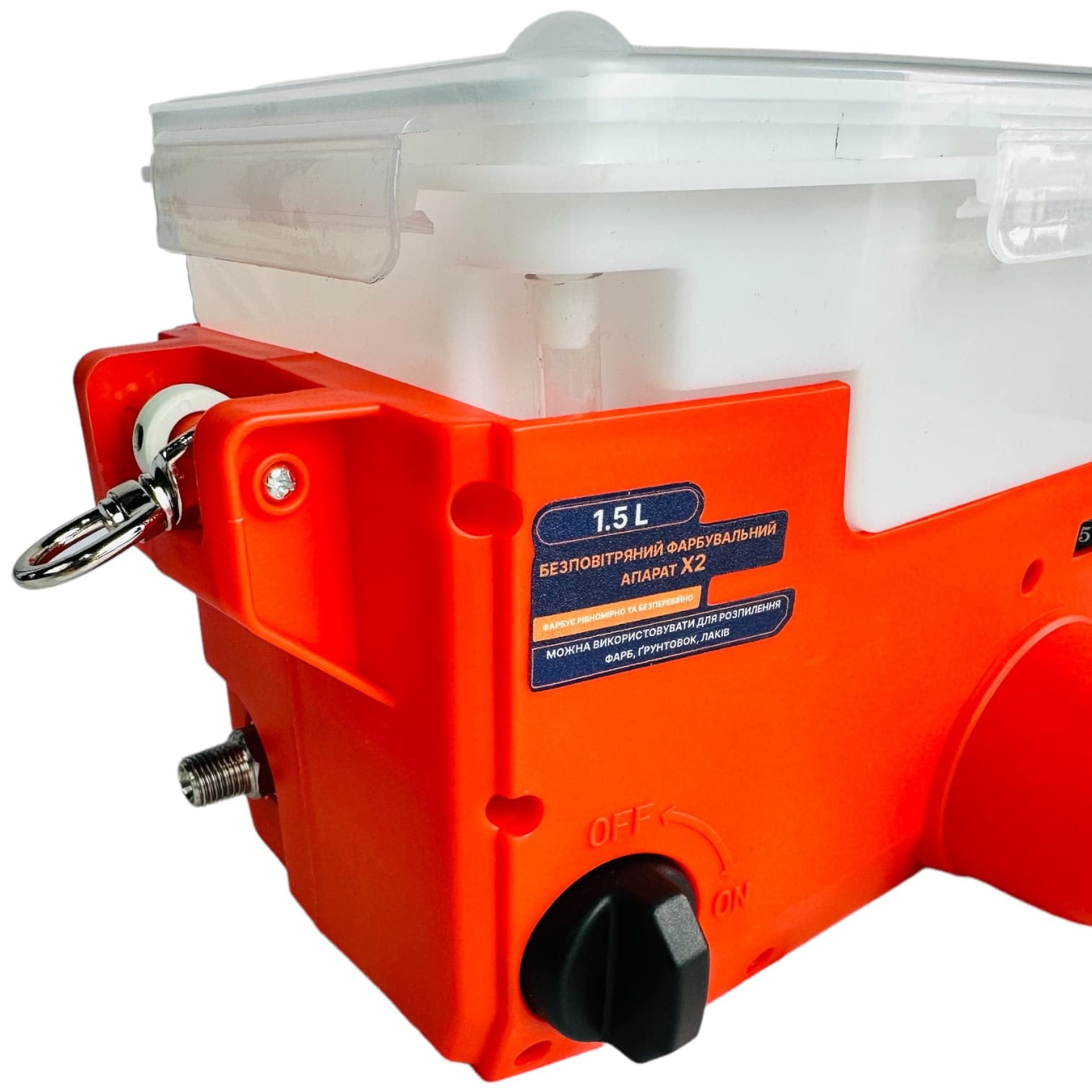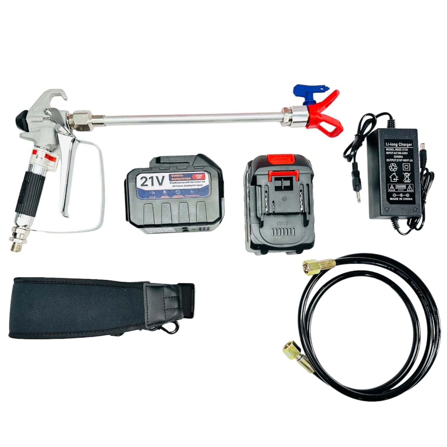 Оснащен бачком для краски 1.7л, шлангом 1.5м пистолетом-распылителем и двумя аккамуляторами, которые обеспечат автономную непрерывную работу.
