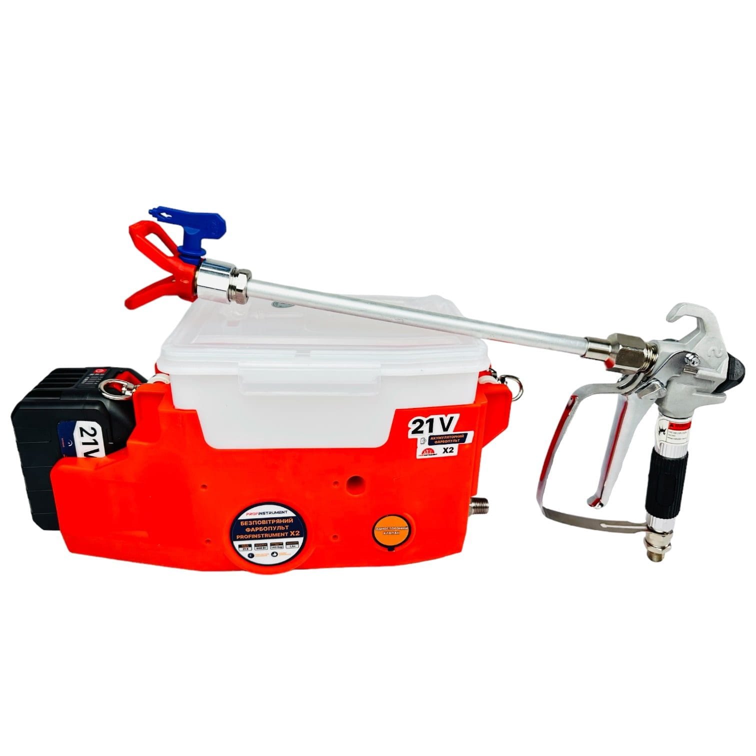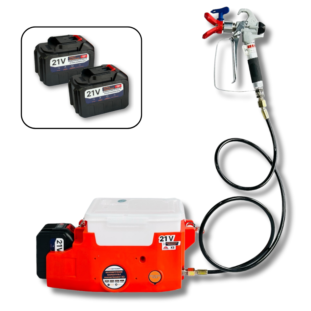 Безвоздушный покрасочный аппарат Profinstrument X2 – автономный электрический краскопульт на аккамуляторе.