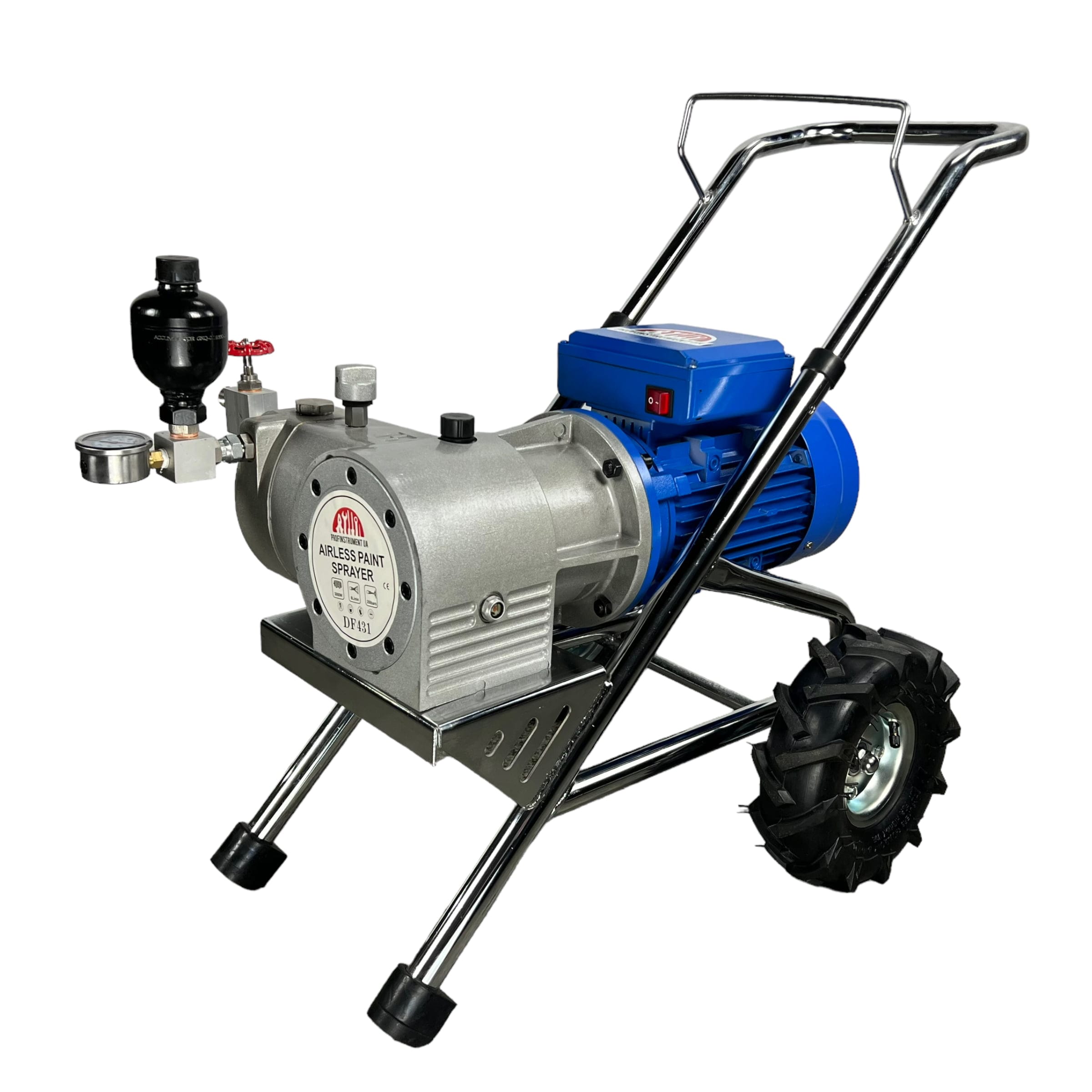 Безвоздушный покрасочный аппарат высокого давления DQ-431 с мембранным насосом специально разработан для профессиональных покрасочных работ среднего и большого объема.