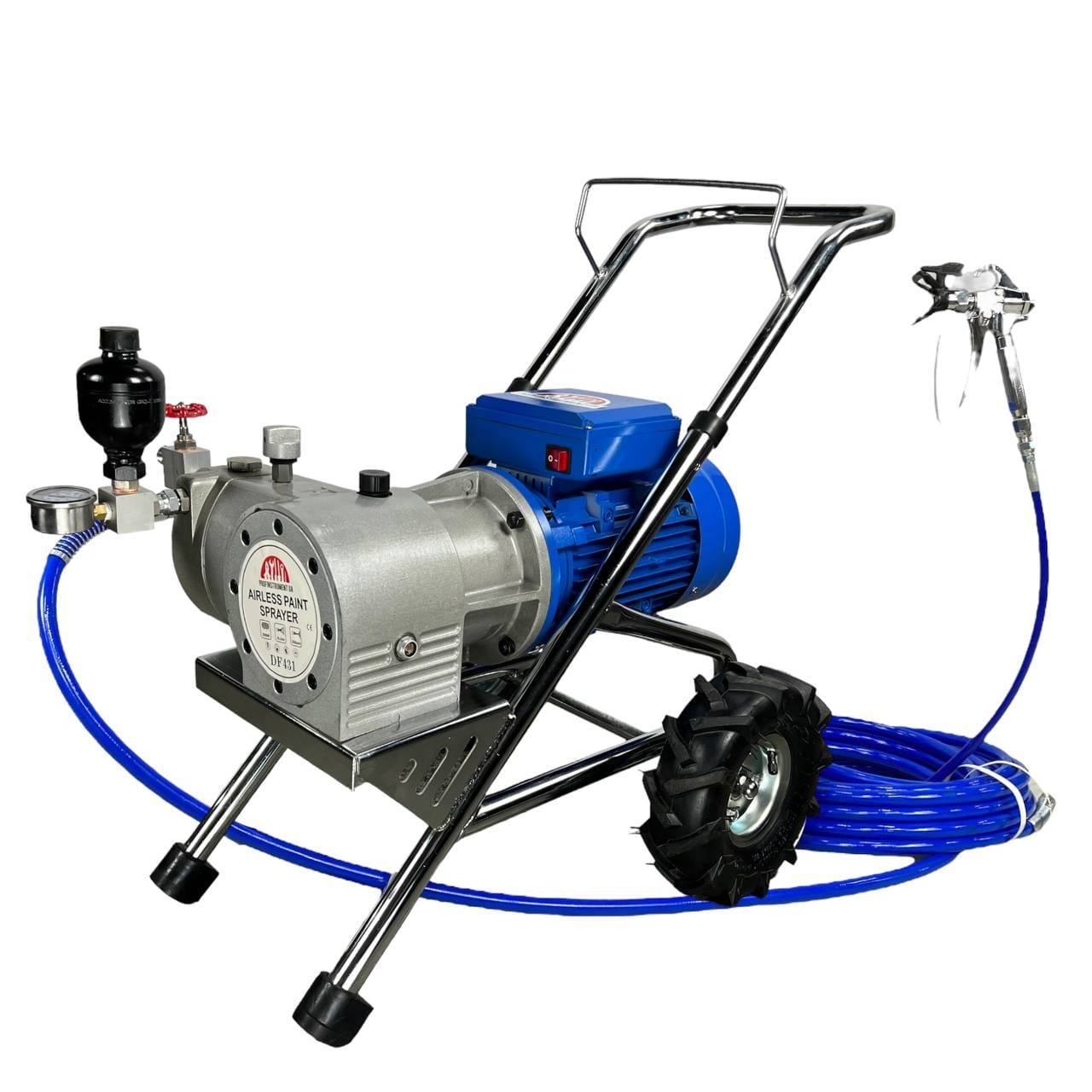 Мембранный аппарат оснащен индукционным (безщеточным) двигателем, аппарат работает практически бесшумно и не требует регулярного обслуживания. С его мощностью и высокой эффективностью справиться с задачами покраски ангаров, цехов, фасадов зданий, антикоррозионной обработки крупногабаритного оборудования и покраски кузовов большого автотранспорта. Даже при больших объемах работ, аппарат легко справляется с заданием.