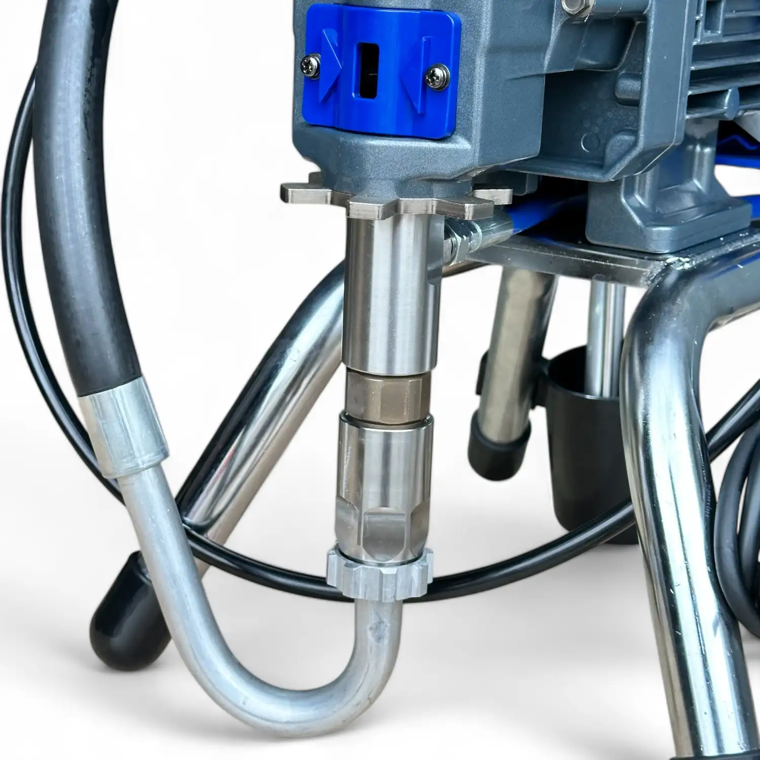 Pro 925 – это поршневой безвоздушный окрасочный аппарат высокого давления с надежным индукционным двигателем.