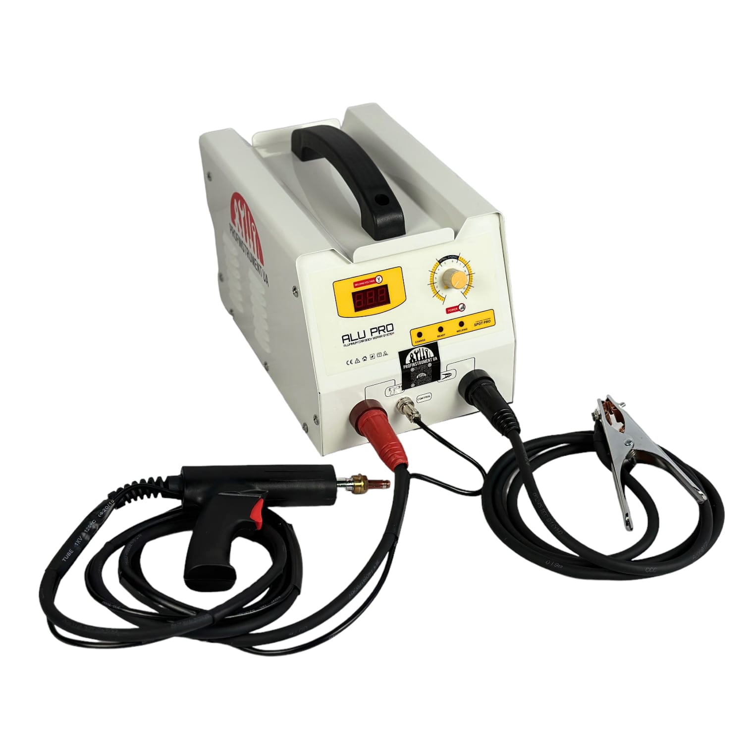 Cпoттep по алюминию 220V Profinstrument SPA 1500 предназначен для приварки шпонок из алюминиевого сплава (диаметром M4/5/6) и последующего устранения холмов и вмятин алюминиевого корпуса автомобиля.