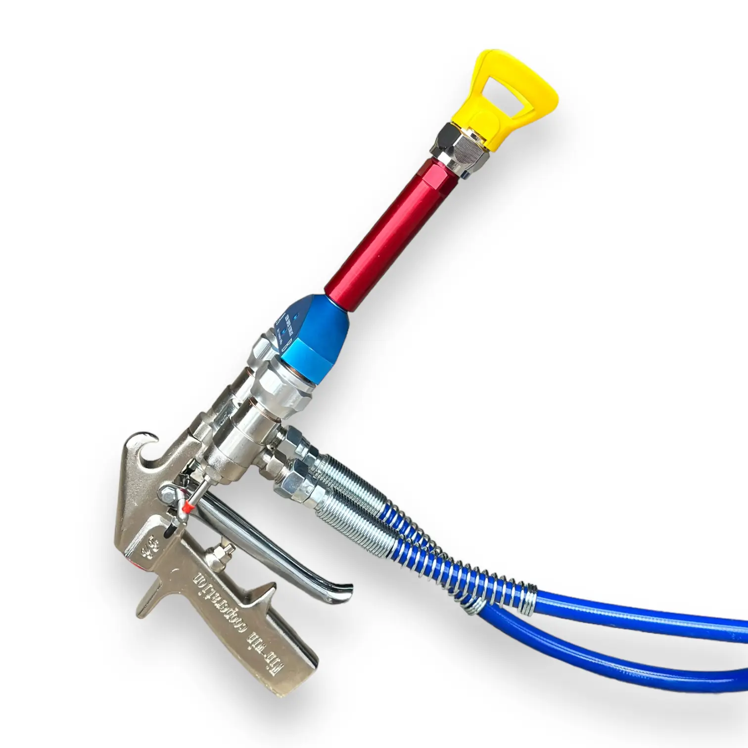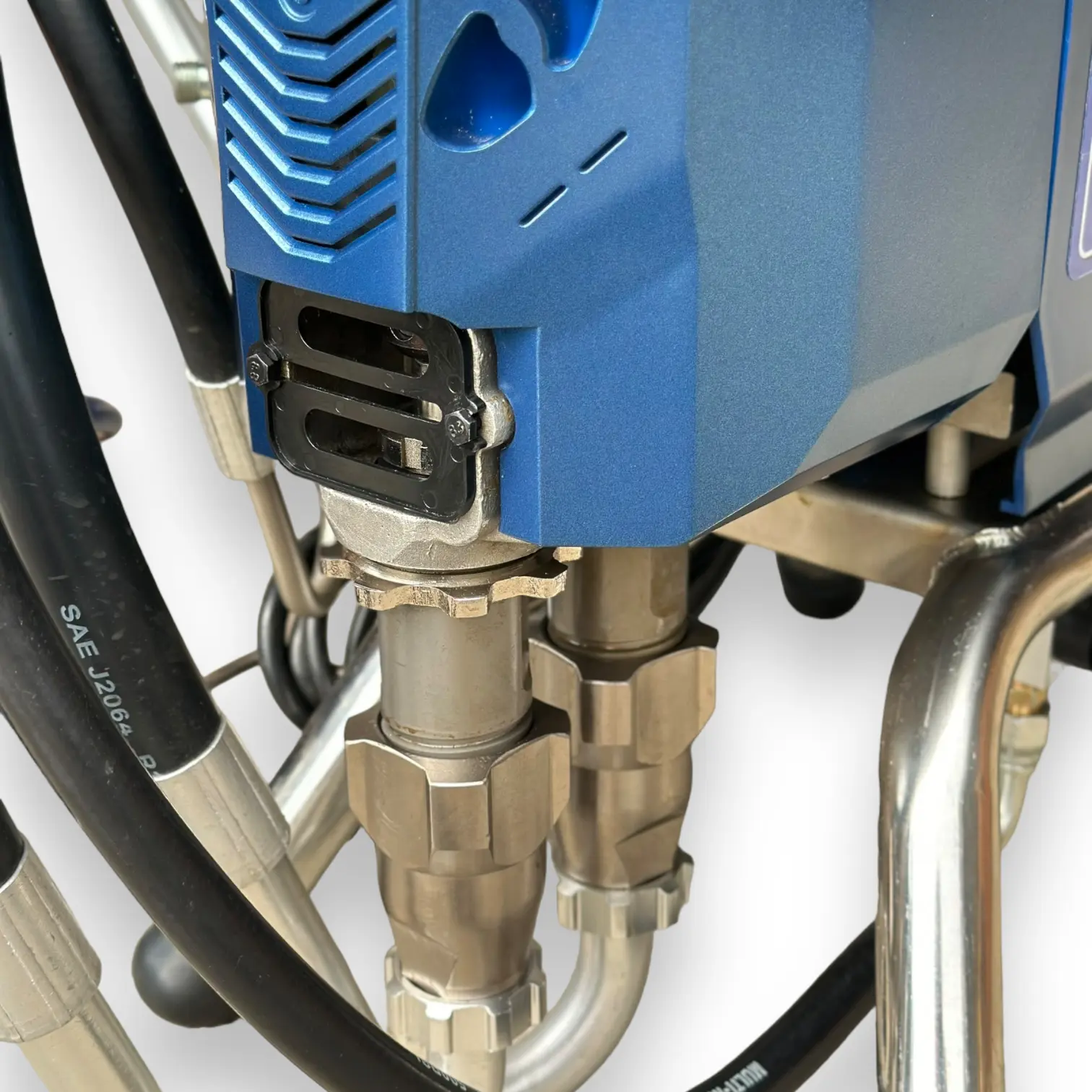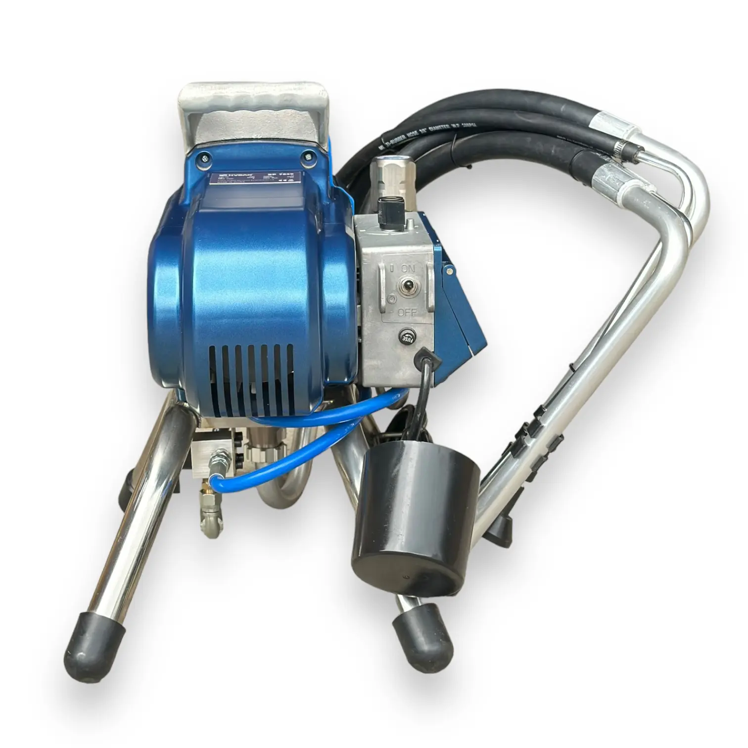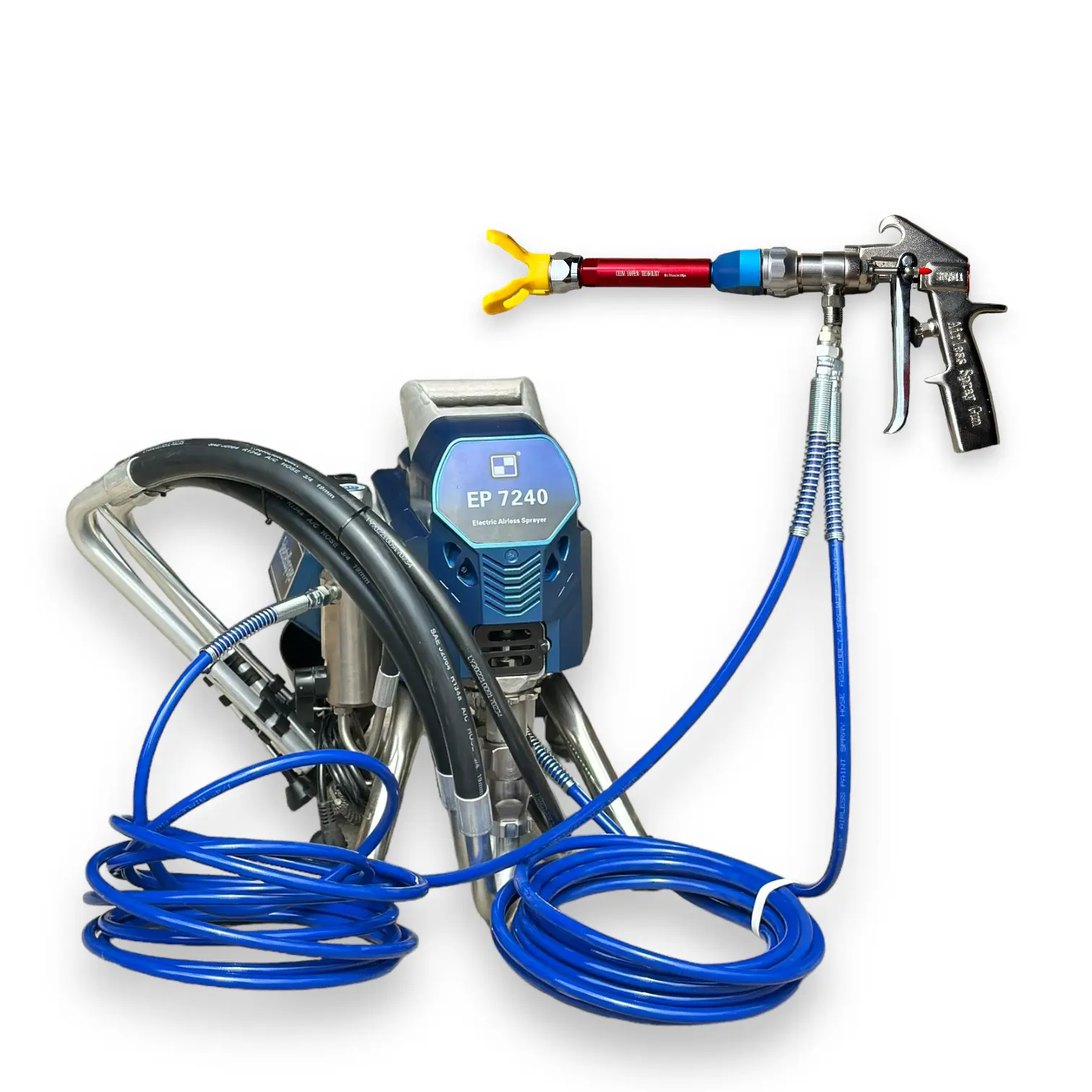 Двухкомпонентный безвоздушный аппарат высокого давления EP-7240 с электроприводом – это недорогая и компактная установка с фиксированным соотношением смешивания 1:1. Эта модель отличается простотой обслуживания и эксплуатации, что делает ее идеальным выбором для различных производственных процессов.