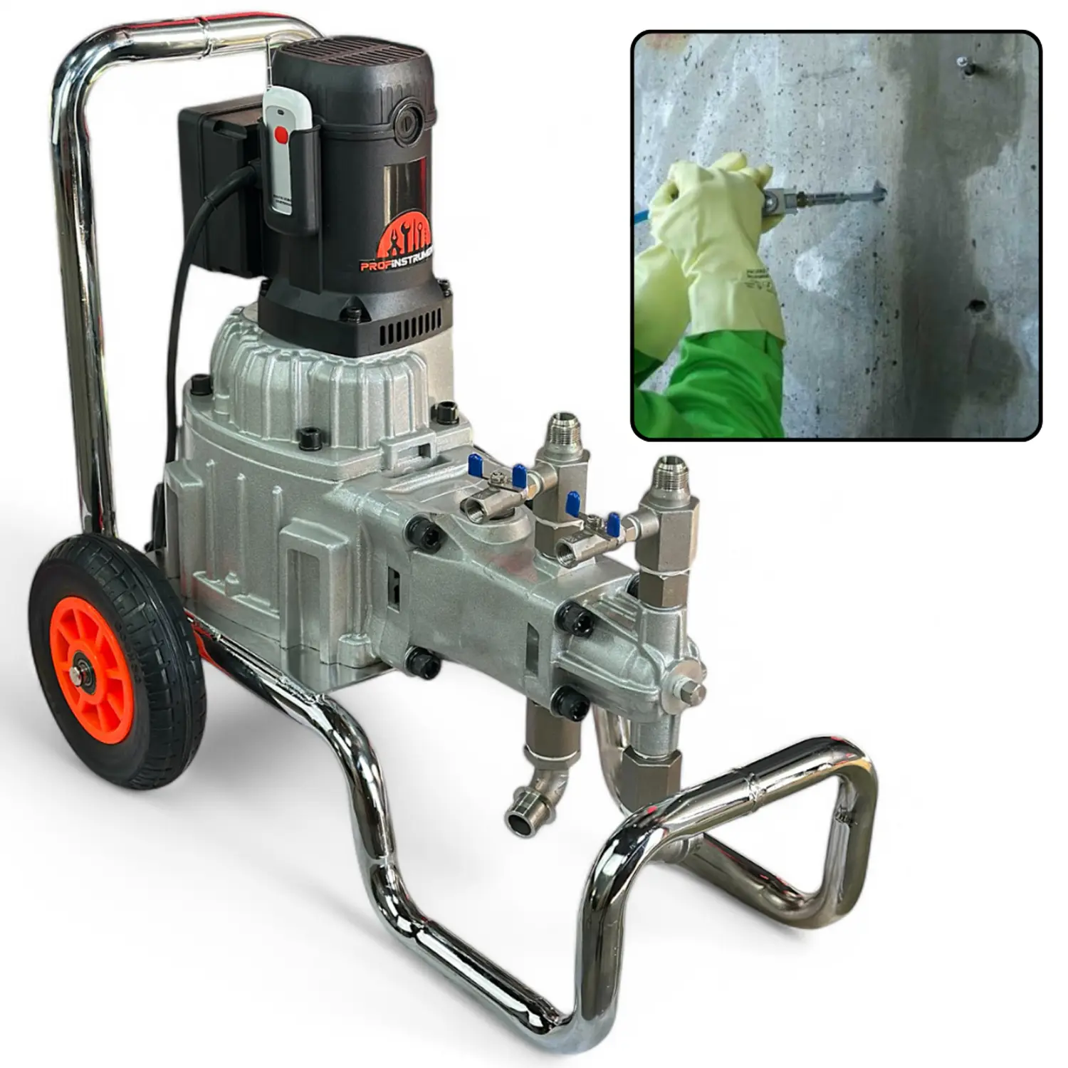 Гидроизоляционный насос Profinstrument XLKT-M20 – современный двухкомпонентный поршневой инъекционный насос, разработанный для работы с полиуретановыми и эпоксидными составами, цементными растворами и другими инъекционными материалами.