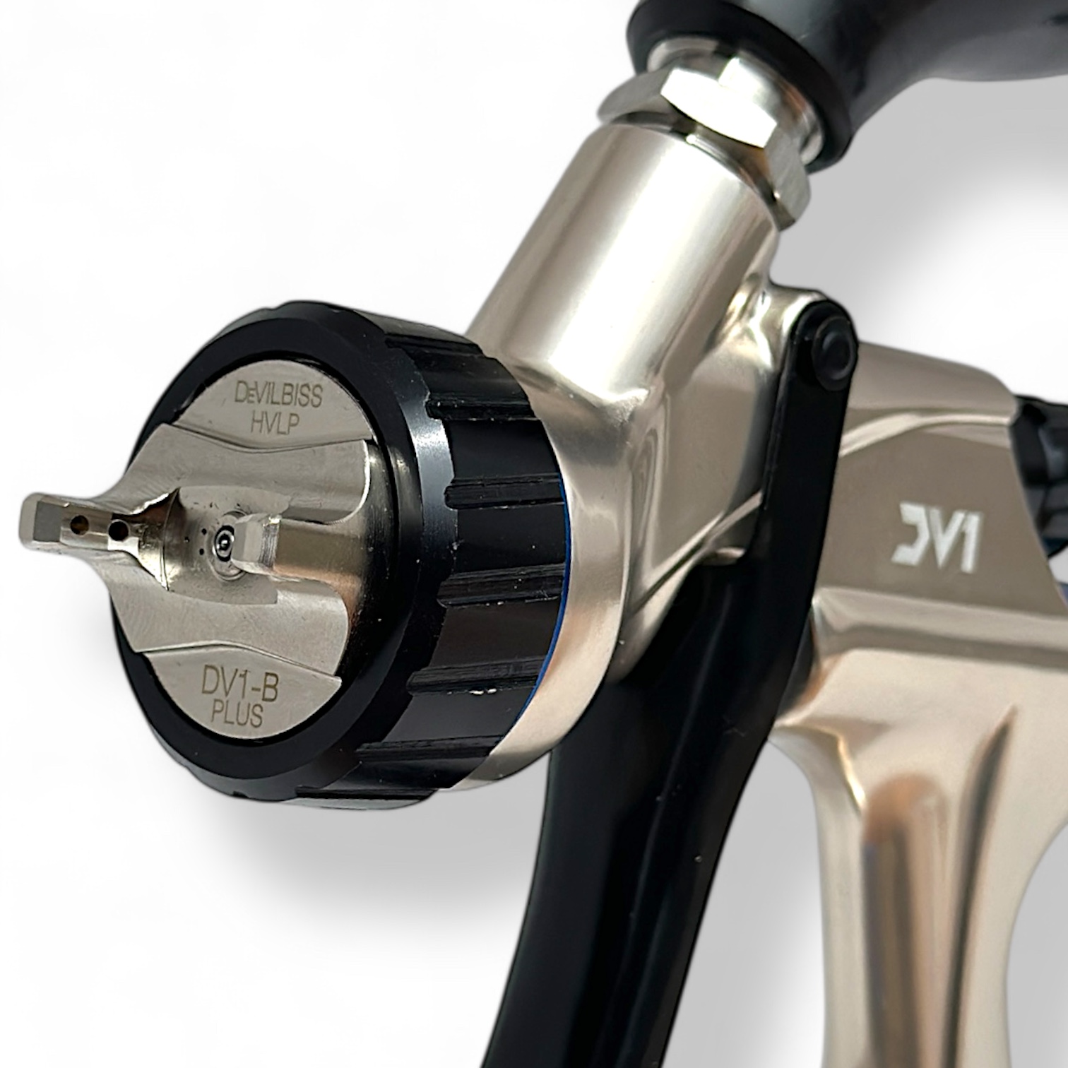 DV1 сочетает воздушный вход и воздушный регулирующий клапан в один коаксиальный компонент и размещает его в эргономичном месте для более комфортного использования. Регулирующий клапан имеет 12-кратную чувствительность для точной настройки воздуха и более плавного потока воздуха через пистолет.