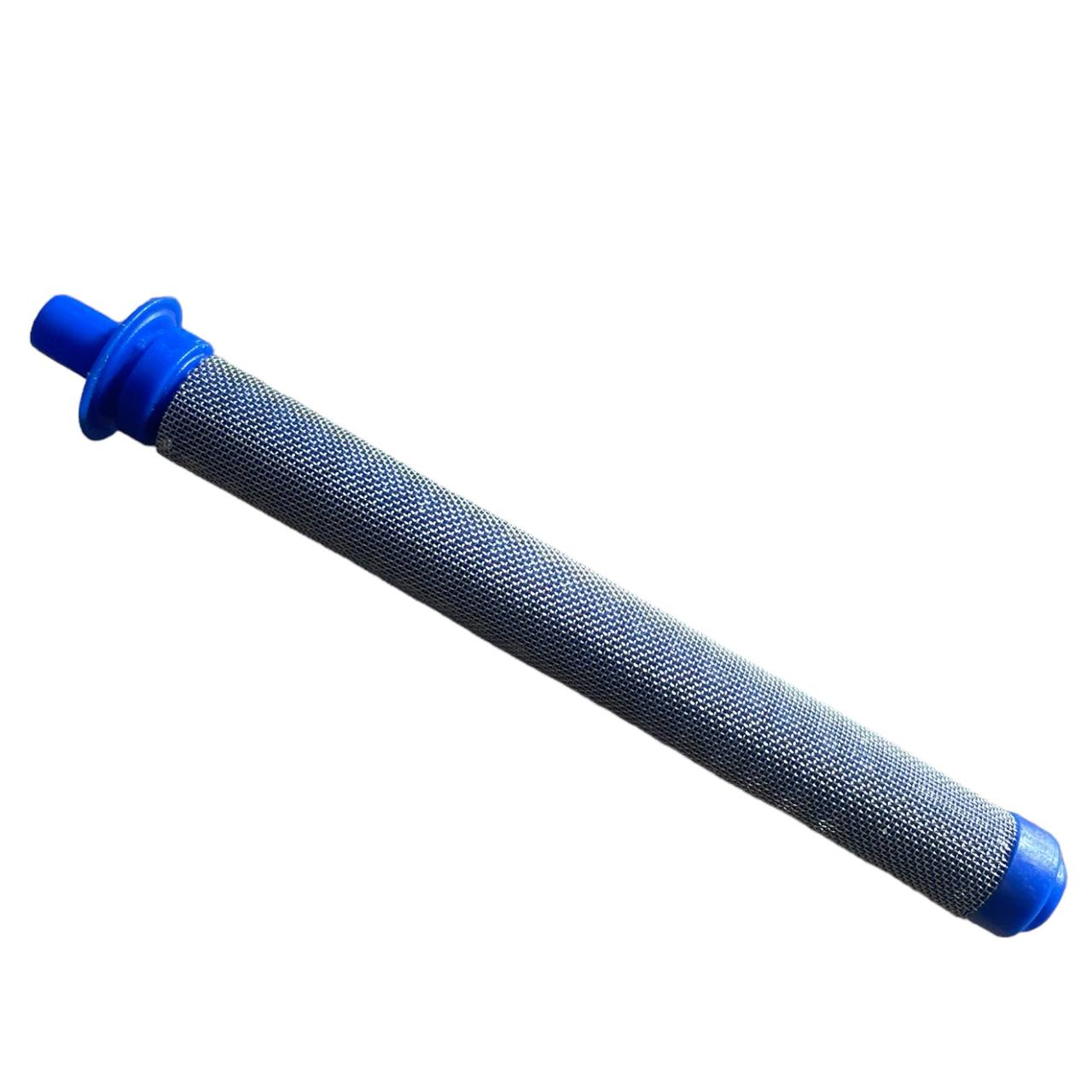 Правильно подобранный фильтр – это залог успеха. Синий – 60 Mesh (размер ячеек 0,31 мм). Фильтр предназначен для установки в ручку пистолета для окраски безвоздушного распыления и служит для тонкой фильтрации краски. Краска перед поступлением в фильтр тонкой очистки уже проходит через фильтр грубой очистки (на заборе), фильтр предварительной очистки (в колбе узла заполнения насоса, у поршневых аппаратов). Фильтр состоит из пластмассового цилиндра с круглыми отверстиями на поверхности, обтянутого металлической сеткой. Рекомендуется подбирать фильтр в соответствии с характеристиками краски (для более жидких красок использовать более тонкую фильтрацию, для более густых более грубую) и диаметром используемого сопла. Регулярно очищайте фильтр, при необходимости замените. Загрязненный фильтр тонкой очистки может привести к потере давления в системе или его отсутствию.