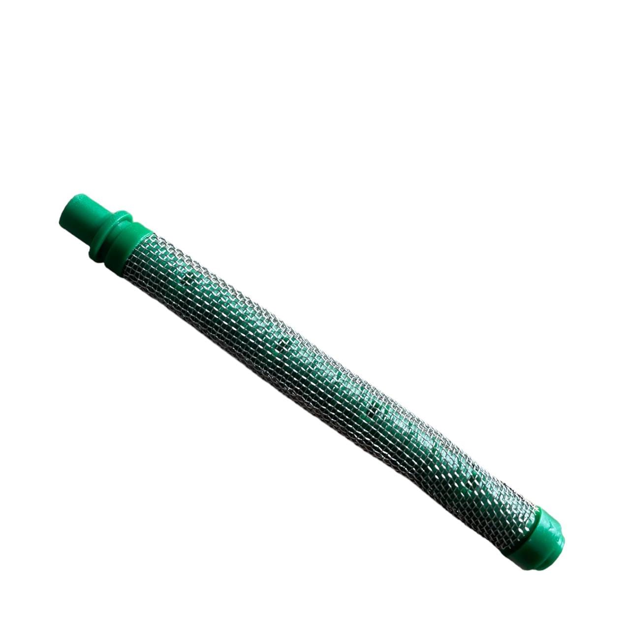 Правильно подобранный фильтр – это залог успеха. Зеленый – 30 Mesh (размер ячеек 0,56 мм). Фильтр предназначен для установки в ручку пистолета для окраски безвоздушного распыления и служит для тонкой фильтрации краски. Краска перед поступлением в фильтр тонкой очистки уже проходит через фильтр грубой очистки (на заборе), фильтр предварительной очистки (в колбе узла заполнения насоса, у поршневых аппаратов). Фильтр состоит из пластмассового цилиндра с круглыми отверстиями на поверхности, обтянутого металлической сеткой.