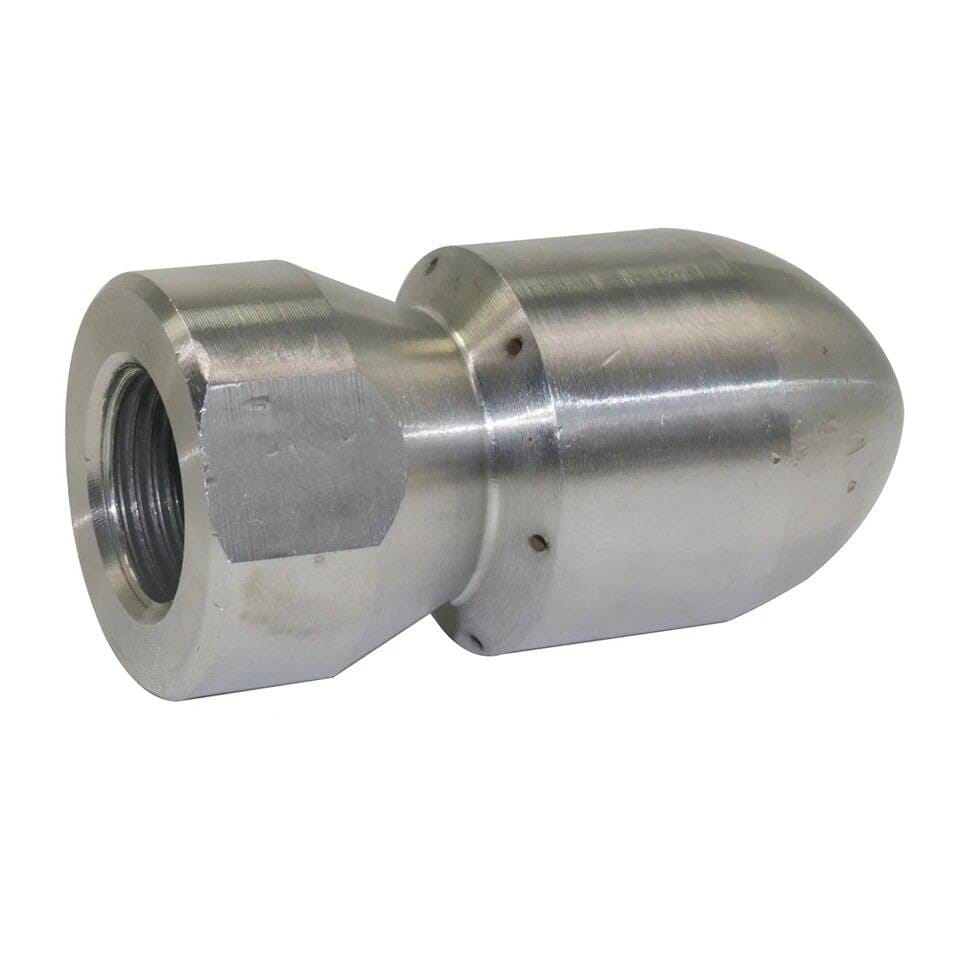 Эта надежная канализационная форсунка изготовлена полностью из нержавеющей стали, что обеспечивает высокую стойкость к ржавчине и коррозии гораздо эффективнее, чем латунные аналоги. Форсунка имеет переднее отверстие, просверленное прямо на 0 градусов для эффективного удаления засоров, и 6 задних отверстий, просверленных под углом 30 градусов для смывания незакрепленного мусора.