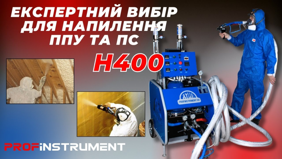 Оборудование высокого давления Profinstrument H400 представляет собой профессиональное решение для теплоизоляции пенополиуретаном. Его используют для работ на мансардах, перекрытиях, фасадах домов, ангарах, емкостях. Также установка позволяет эффективно производить гидроизоляцию с помощью полимочевины, в частности для гидроизоляции зданий, антикоррозионной защиты, химической защиты, абразивной защиты, декоративного покрытия и ремонта гидроизоляции. Profinstrument H400 подходит для работы в больших и средних помещениях с объемом работ от 100 до 500 м² в день.