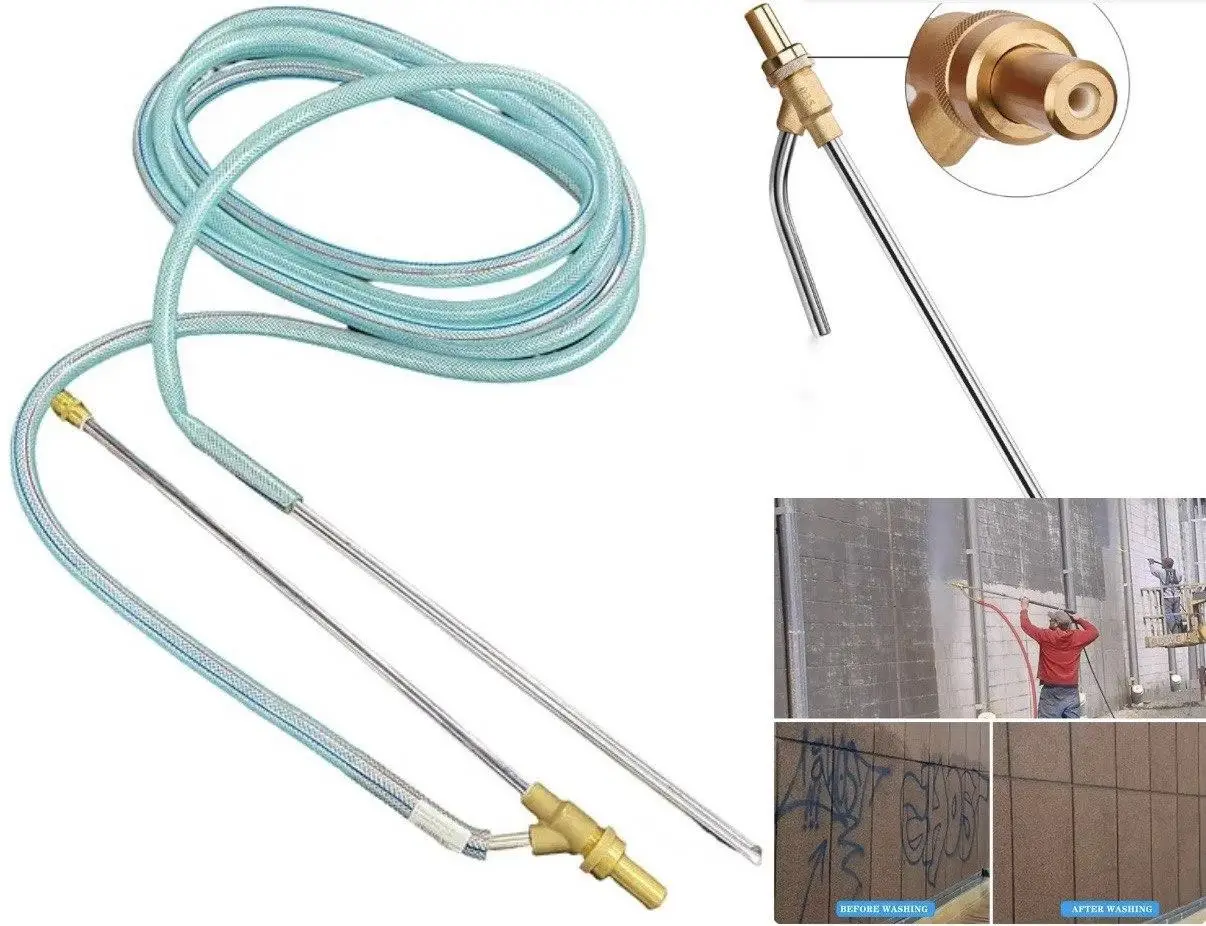Профессиональный набор для абразивной очистки (пескоструйный набор) с использованием аппарата высокого давления. Он используется для абразивного удаления краски, ржавчины и т. Д. С таких поверхностей, как сталь или оцинкованное железо.