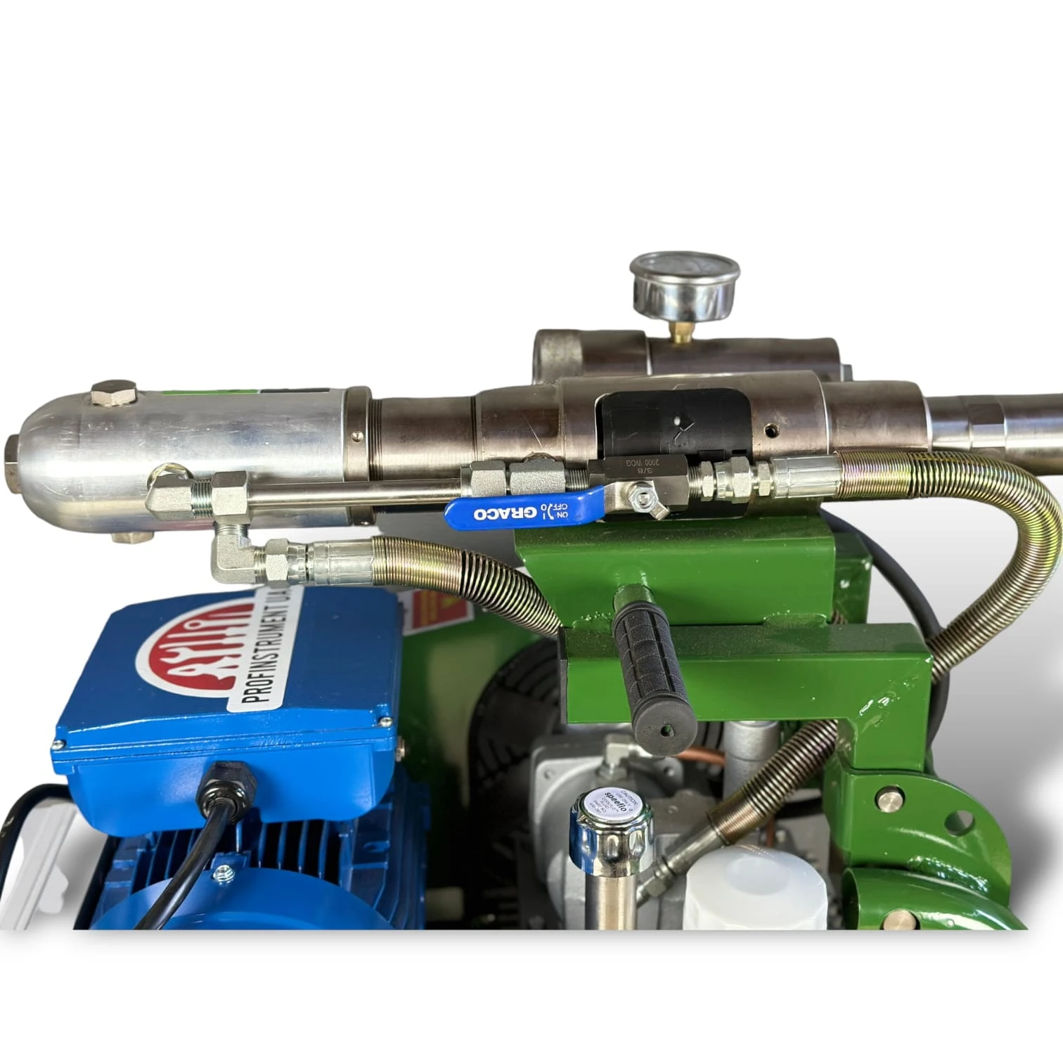 Гидропоршневой насос агрегата приводится в действие гидросистемой, которая, в свою очередь, приводится в действие электрическим двигателем. Гидропоршневая система позволяет работать гораздо эффективнее, чем классические поршневые покрасочные аппараты с электродвигателем.