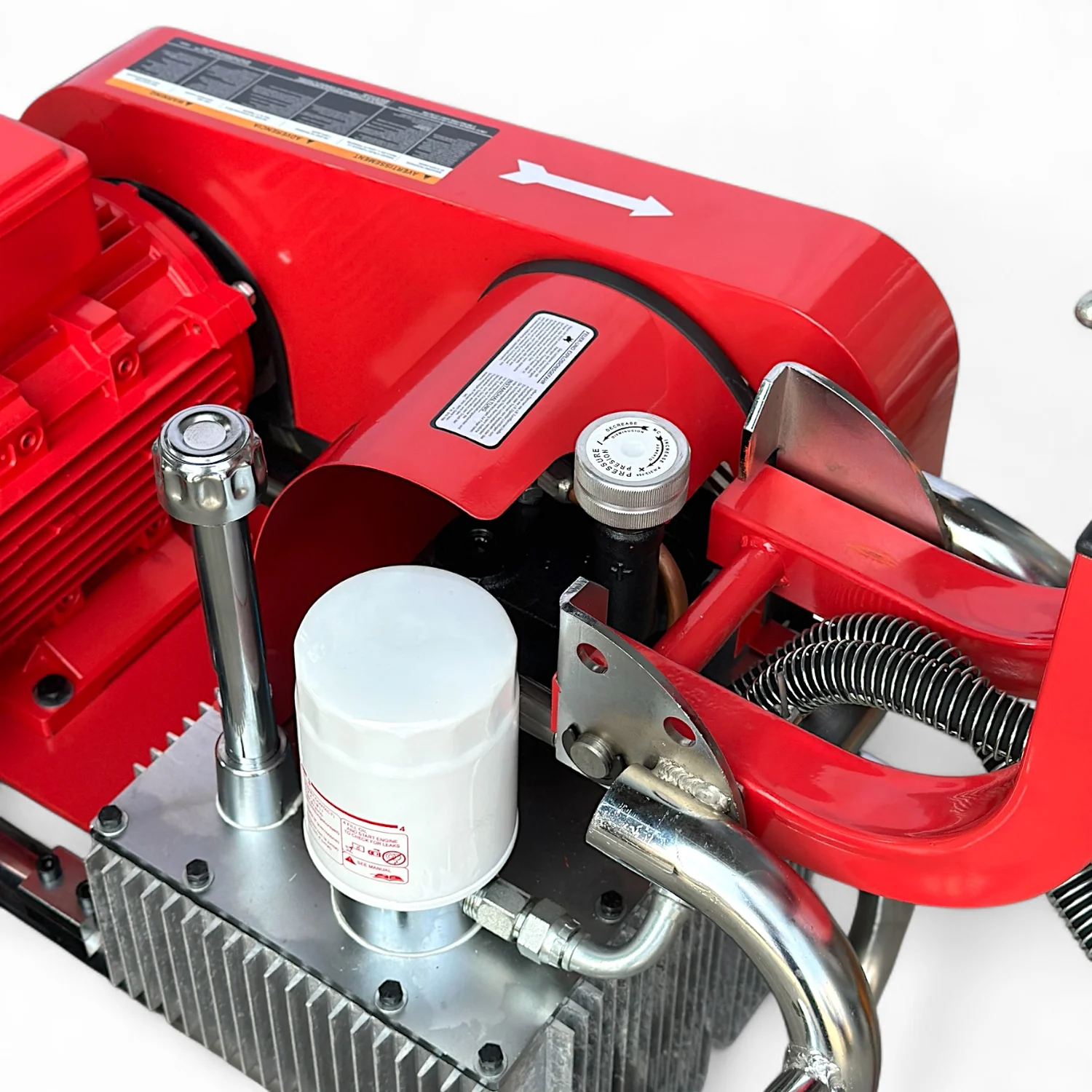 В отличие от обычных поршневых аппаратов, где привод активируется только при нажатии на курок, гидросистема работает непрерывно, что приводит к нагреву масла. Чтобы избежать перегрева, в конструкции использован ременный привод масляного насоса , который снижает скорость движения поршня, уменьшая трение и нагрев.