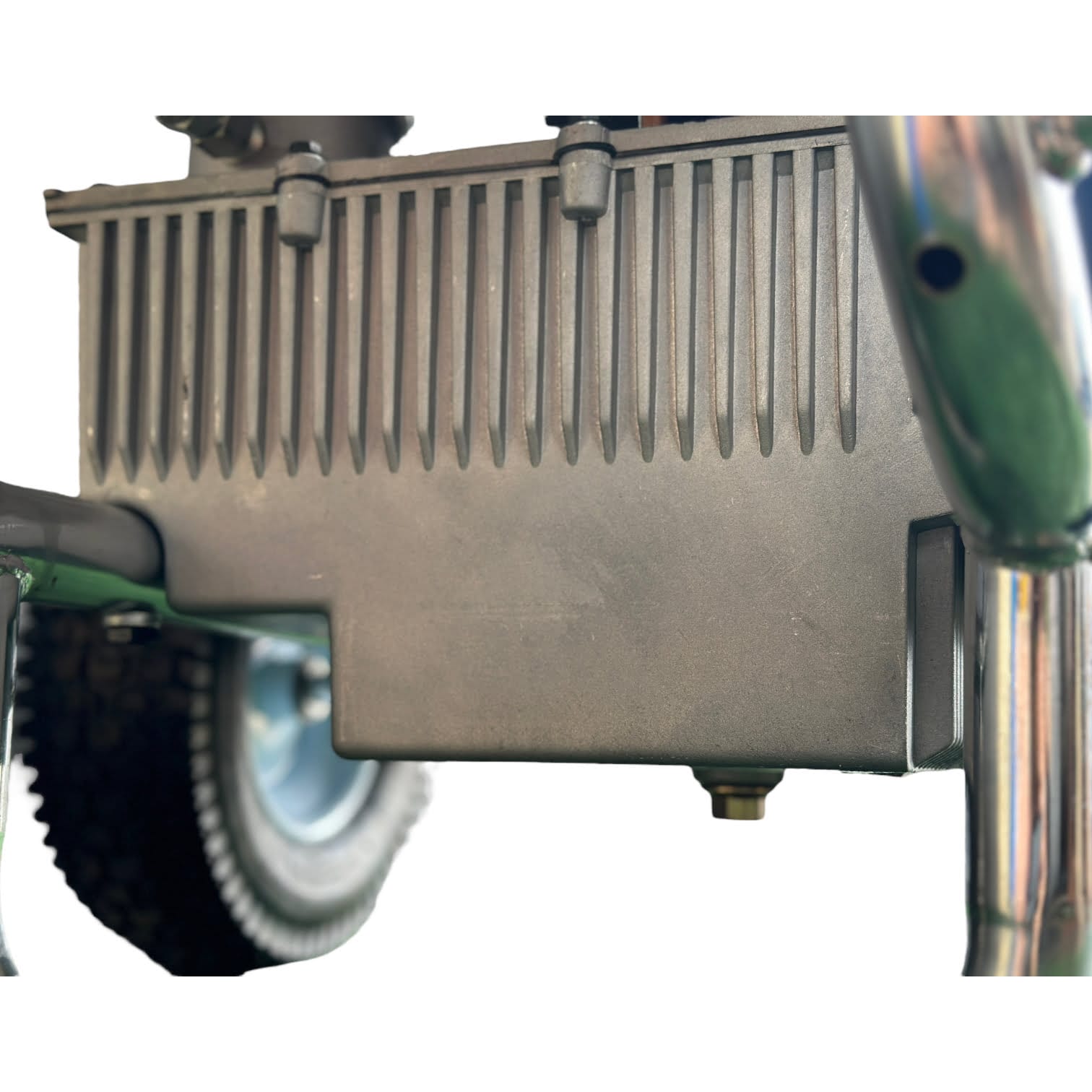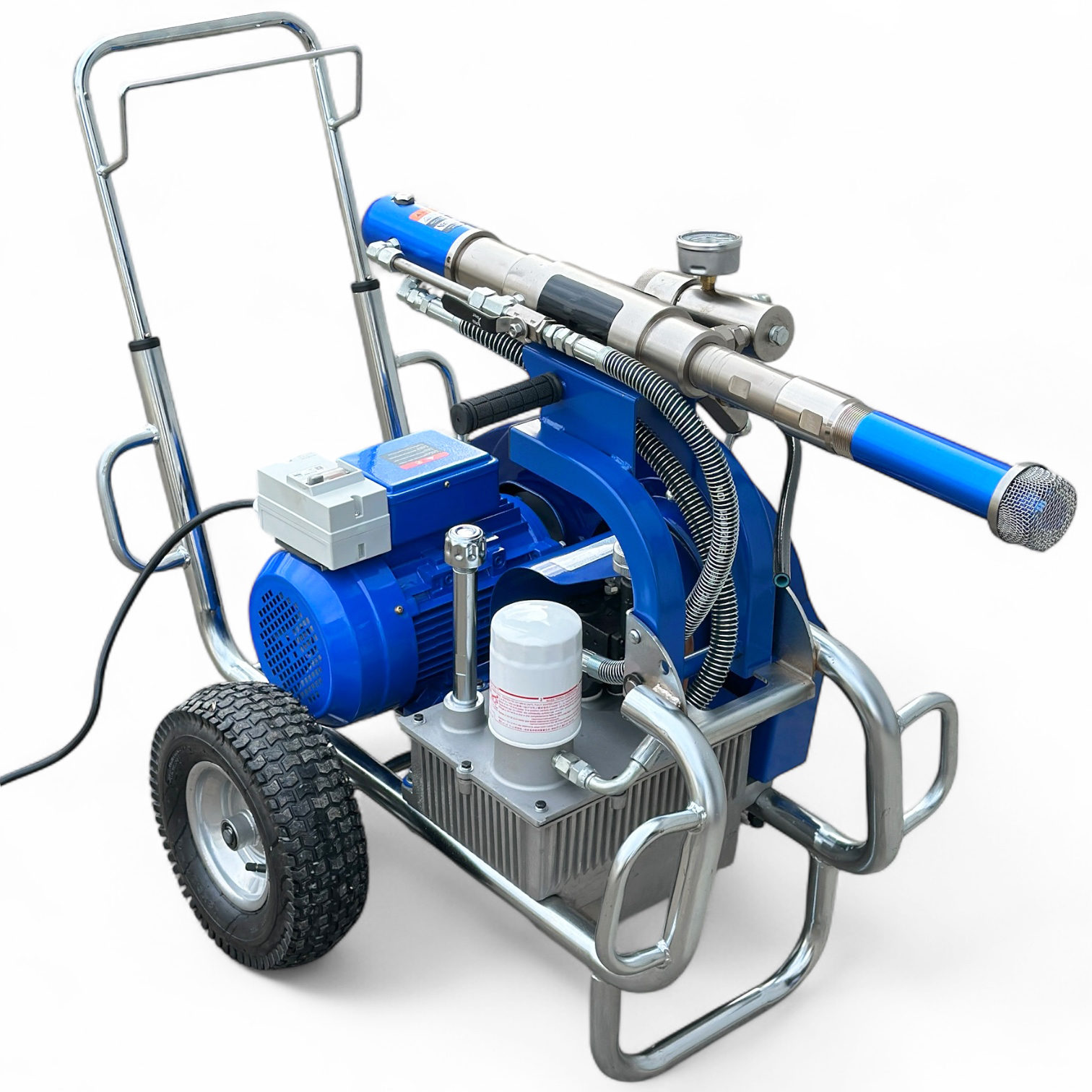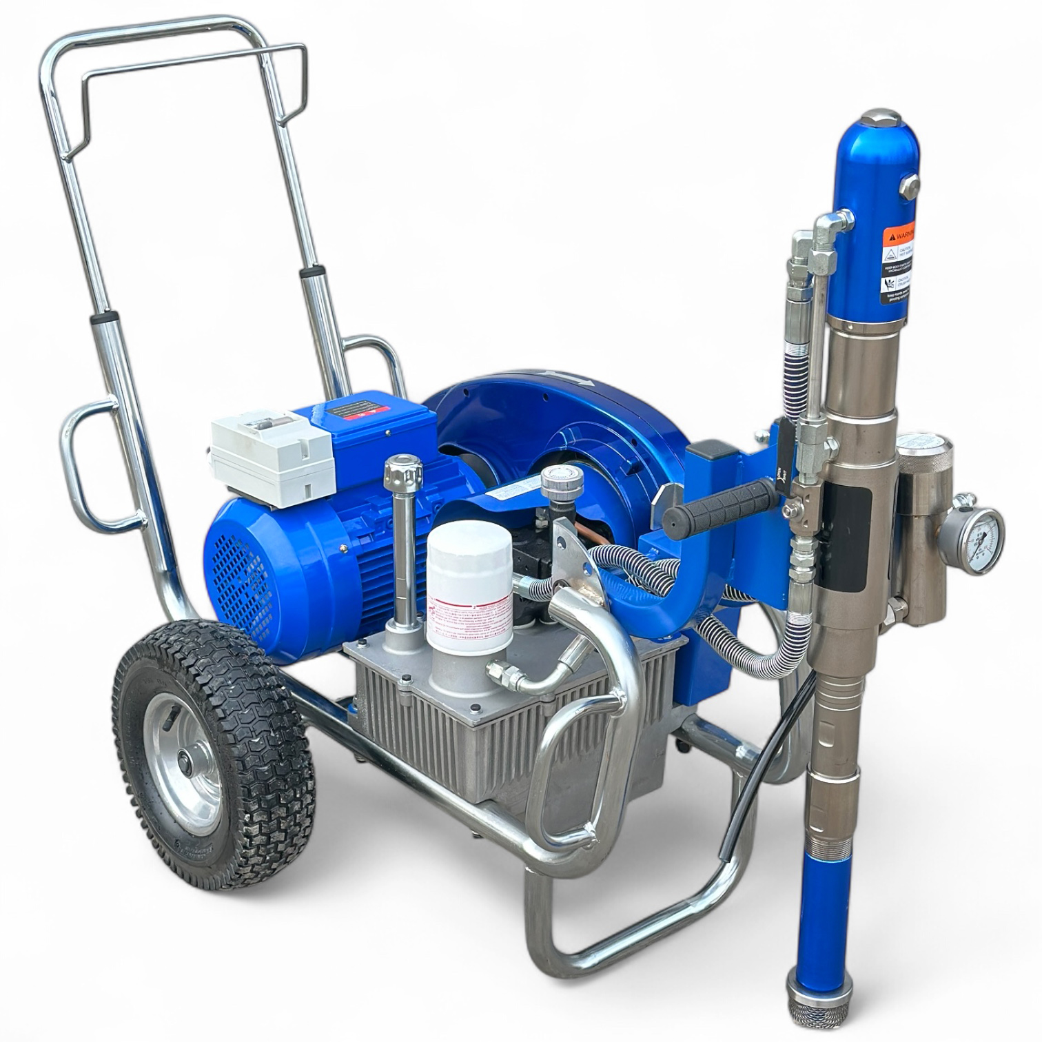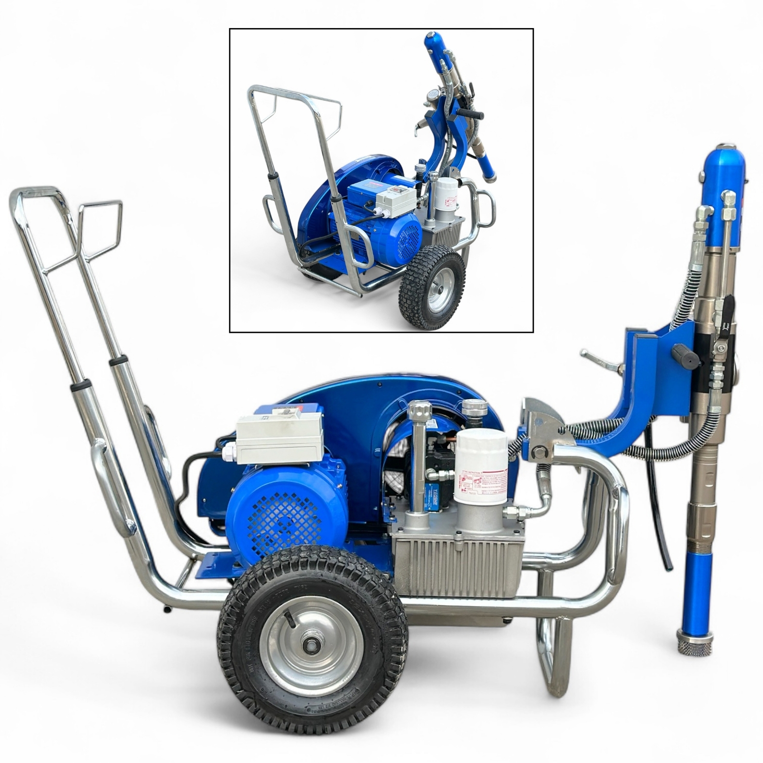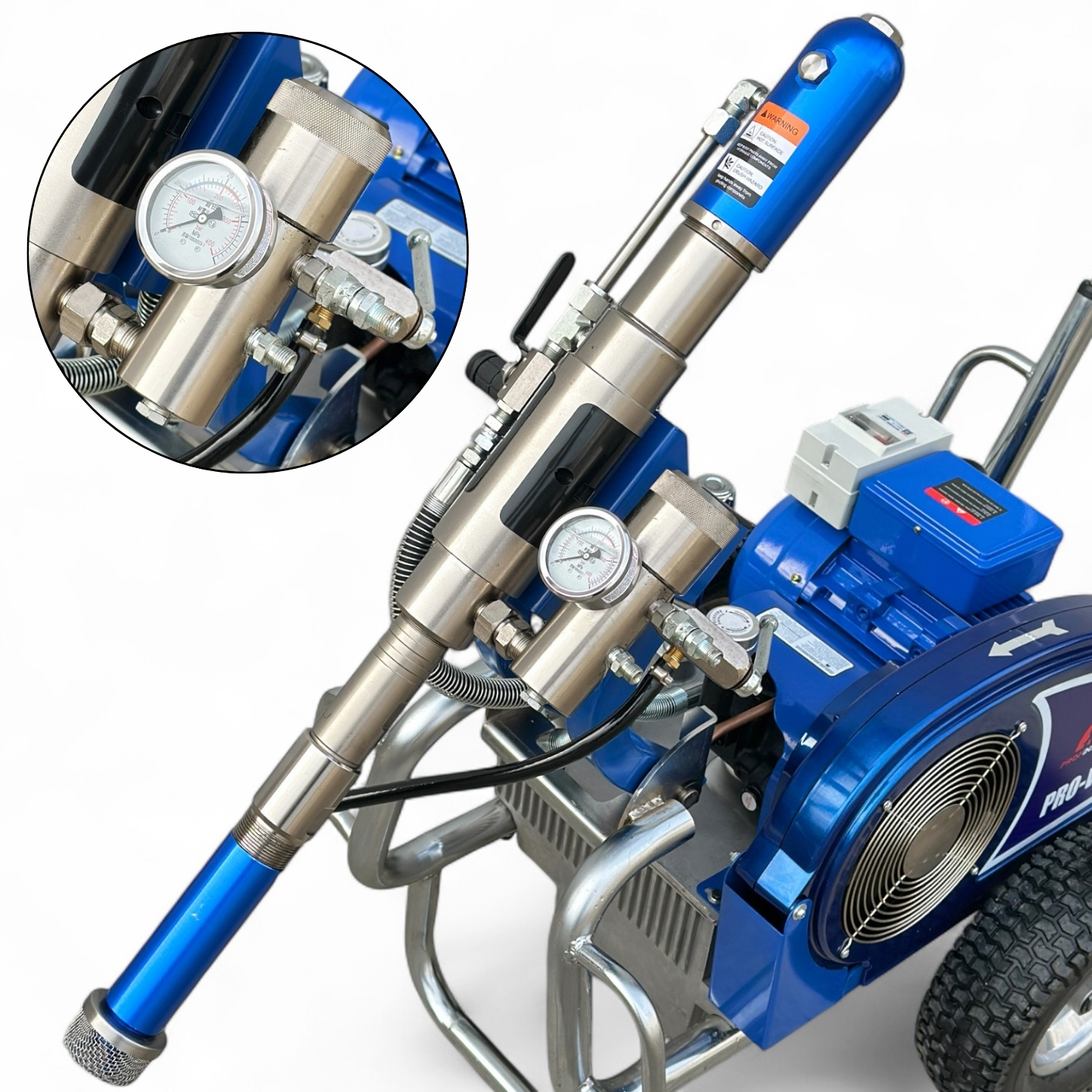Гидропоршневой насос агрегата приводится в действие гидросистемой, которая, в свою очередь, приводится в действие электрическим двигателем. Гидропоршневая система позволяет работать гораздо эффективнее, чем классические поршневые покрасочные аппараты с электродвигателем.