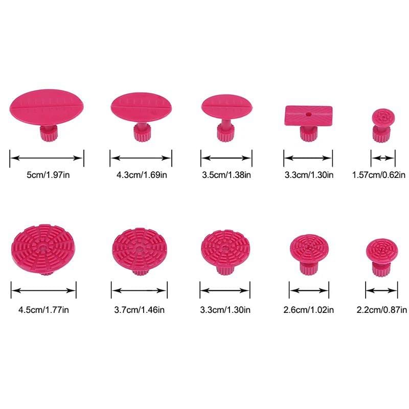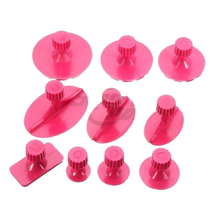 Цвет грибков – красный, материал – пластик. Этот набор является отличным выбором для ремонта автомобильных вмятин разного типа и размера.