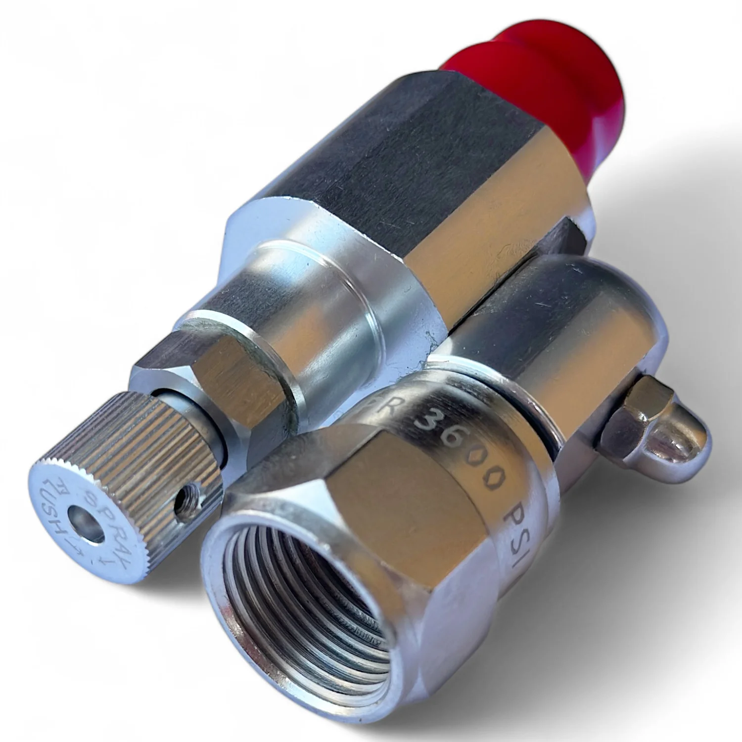Распылительная насадка Clean Shot подходит к любым удлинителям (удочка) резьбой 7/8 дюйма (около 21мм). Это не только поворотный узел, но и регулятор давления с клапаном, расположенным непосредственно перед соплом. Регулятор давления не дает клапану открыться до тех пор, пока не будет достаточного давления, а в случае падения давления, напротив, прекращает распыление, что помогает избежать пленок краски.