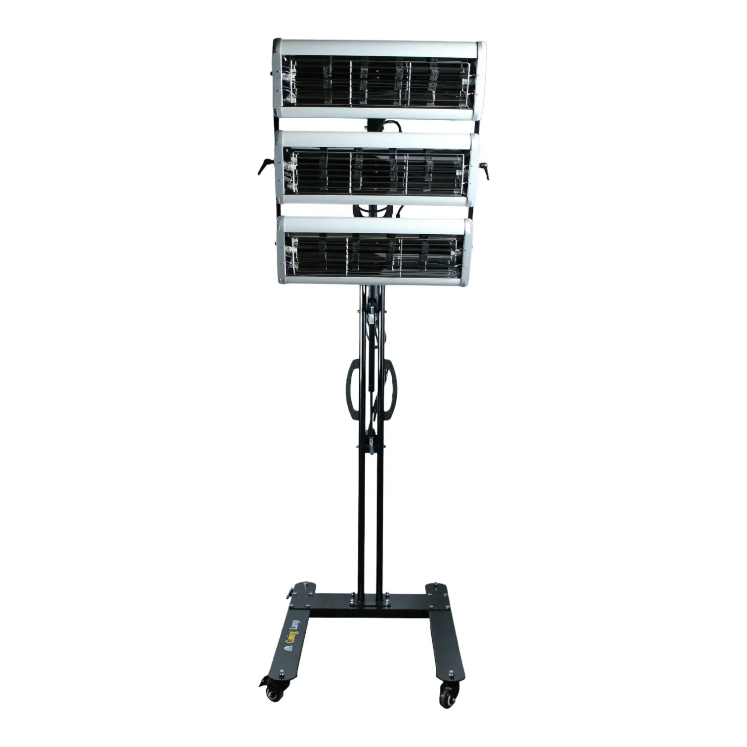 Передвижная инфракрасная коротковолновая лампа Profinstrument OL-3600 . Подходит для сушки всех типов лакокрасочных материалов. 3 кварцевые галогенные кассеты по 1200 Вт каждая (длина – 540 мм) равномерно прогревают окрашенные детали в металл, ускоряя процесс испарения растворителя.